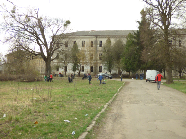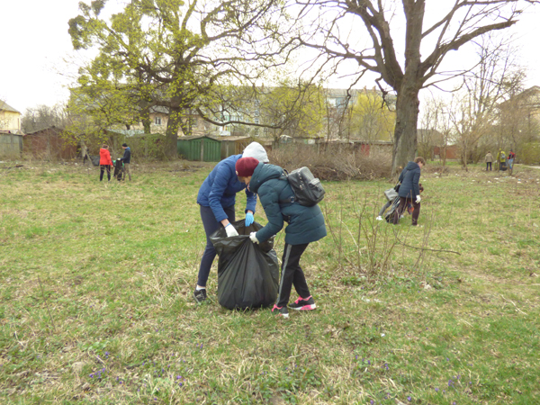 Молодь, яка навчається на факультетах філології та журналістики, міжнародних відносин та інформаційних систем, фізики та математики зібралися біля студентського містечка (вул. Володимирська, 1). Завдяки їхній дружній і злагодженій праці ця територія тепер чиста.