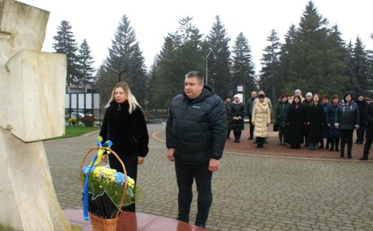 Міський голова Вячеслав Поліщук та секретар міської ради Надія Зінгель поклали квіти до пам’ятного знаку «Борцям за волю та незалежність України».