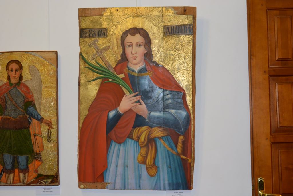“30 творів темперного і олійного живопису, представлені на виставці, репрезентують українські та західноєвропейські іконописні традиції ХVІІ-ХІХ століть. У нашій експозиції можна побачити образи найшановніших у народі святих: Миколая, Юрія, Дмитрія, архистратига Михаїла, архангела Гавриїла, Варвари, Катерини, Параскеви та святих апостолів”, – розповіла вона.
