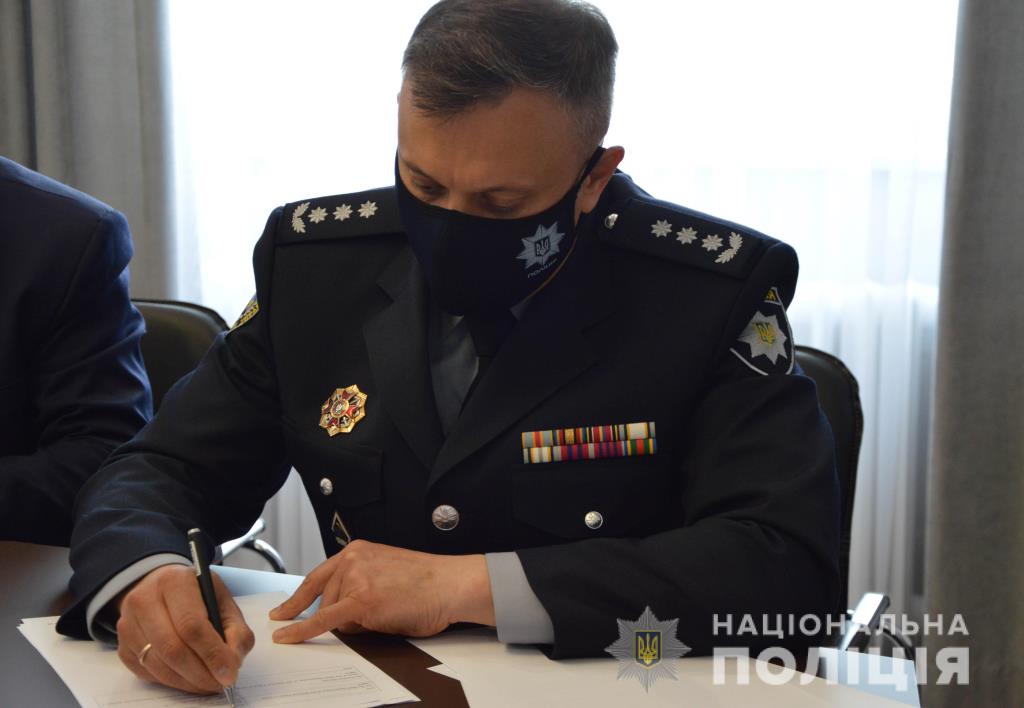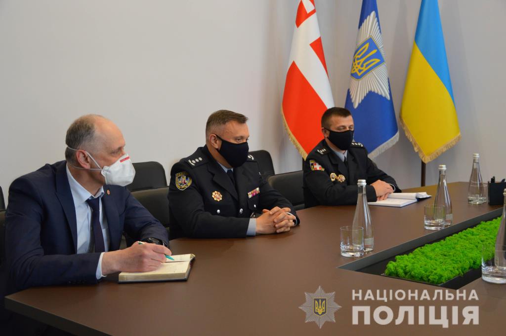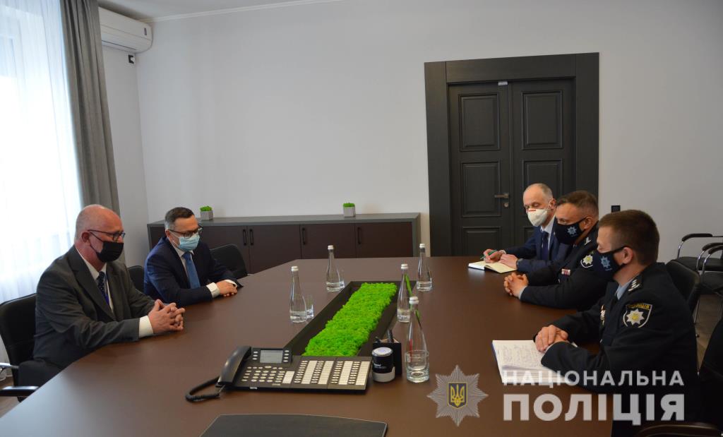 Під час зустрічі з керівником відомства Юрієм Крошко, начальником УОАЗОР Віталієм Ковальчуком, керівником сектору міжнародного поліцейського співробітництва Ігорем Рябчиковим було підписано договір щодо передачі товарно-матеріальних цінностей у межах міжнародної технічної допомоги.