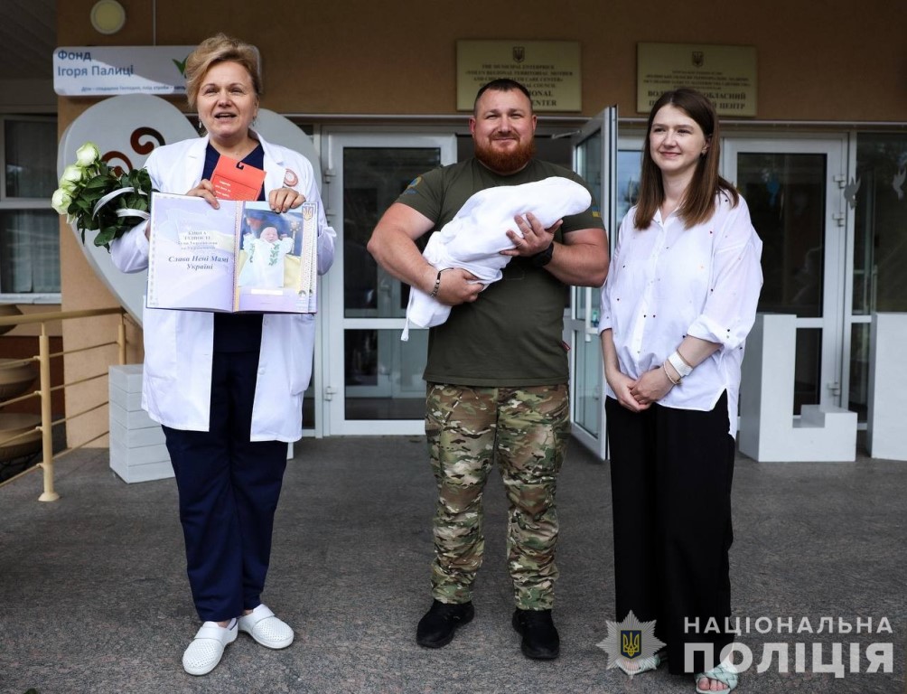 Так і не дізнався, що стане батьком удруге: у Луцьку поліцейські привітали дружину загиблого колеги з народженням дитини