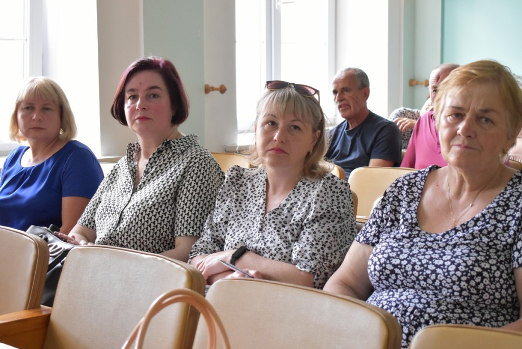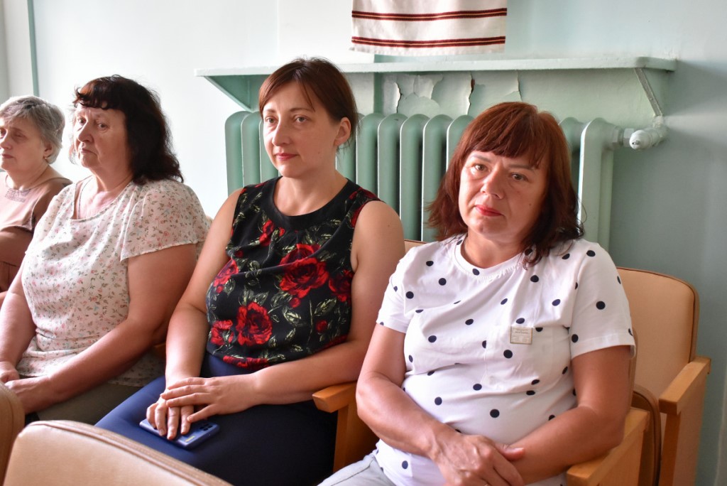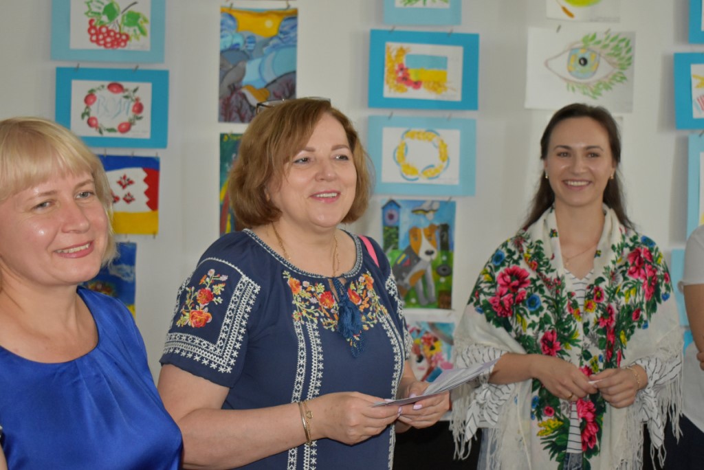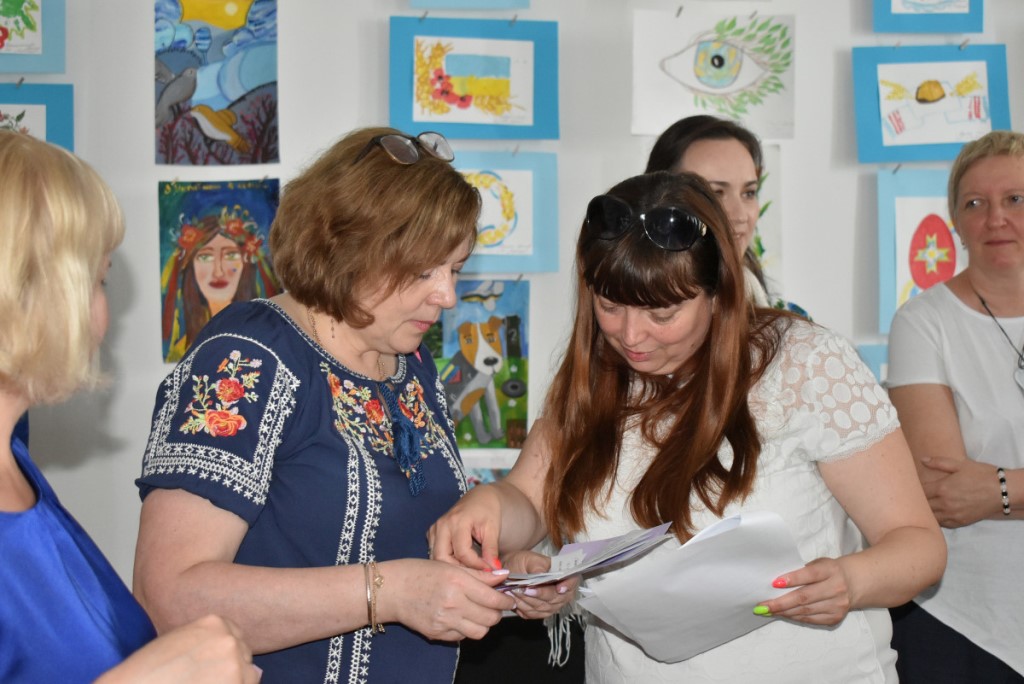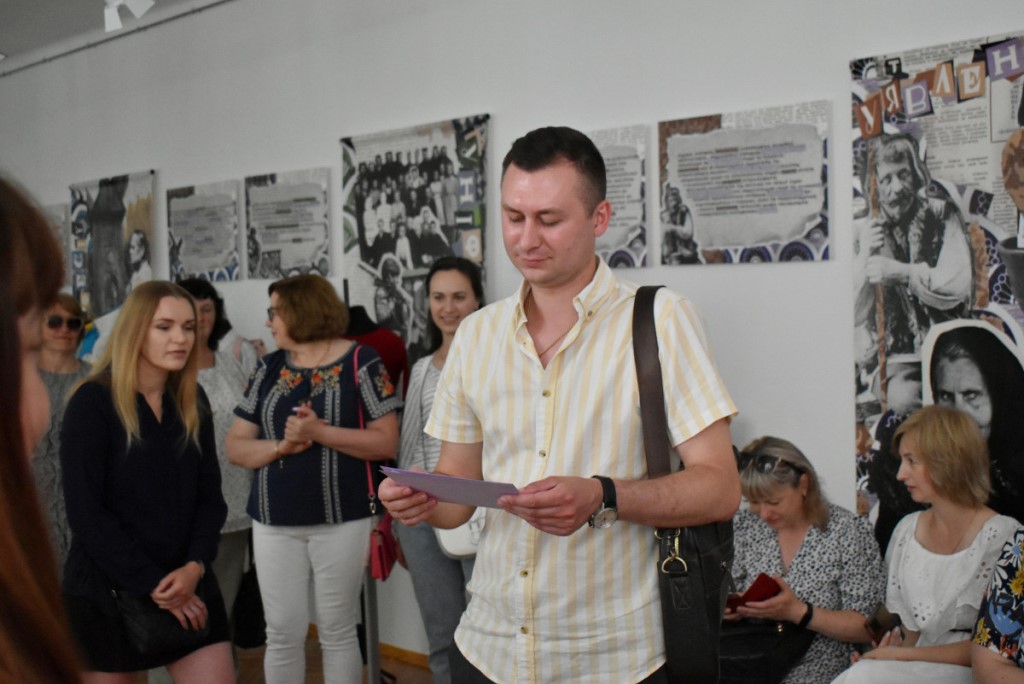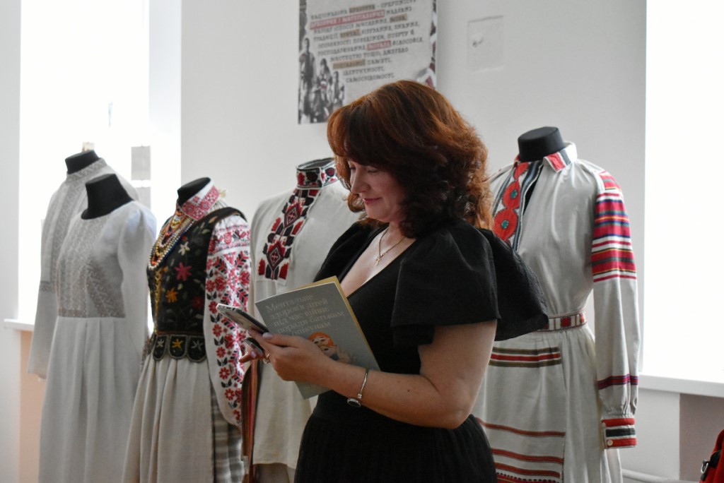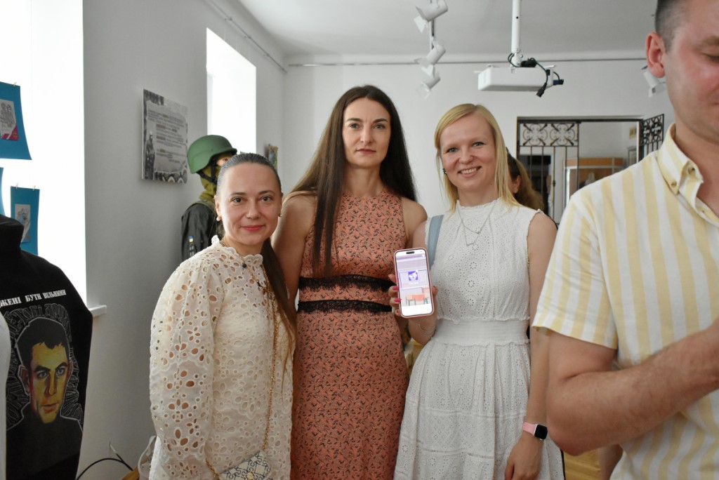 Також вона підкреслила, що популярним напрямком психосоціальної підтримки у сфері культури є терапія мистецтвом. Тож учасники заходу ознайомилися з експонатами виставки «Свій/Чужий. Історії про…». Еспозиція розрахована на різну аудиторію та містить традиційні українські весільні вишиванки, дитячі малюнки, вбрання нацгвардійця та воїна 3-ої штурмової бригади ЗСУ, а також розпізнавальні знаки представників різних професій.