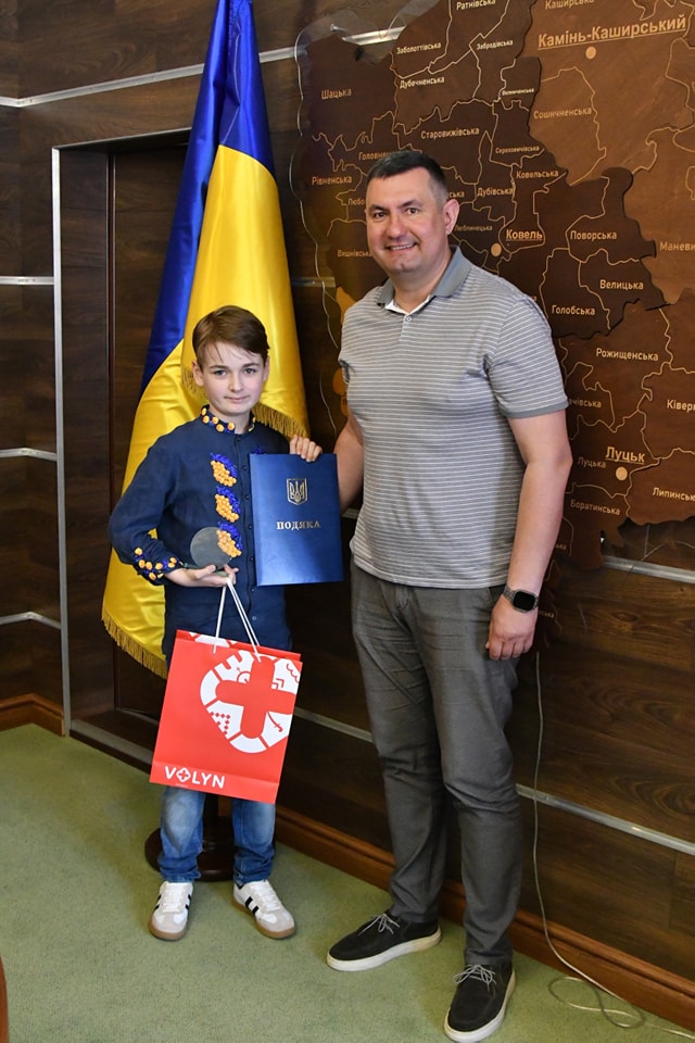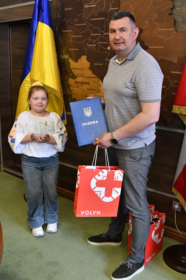 «Щиро пишаюся перемогою наших юних художників у такому престижному конкурсі і вдячний викладачам за те, що плекають і зрощують таких талановитих дітей», – зазначив голова Волиньради. Також Григорій Недопад вручив Уляні Гіль, Аріні Луцюк та Даниїлу Дрозду подяки та пам’ятні сувеніри, а також відзначив їхніх викладачів – Тетяну Токареву та Катерину Юрчук.