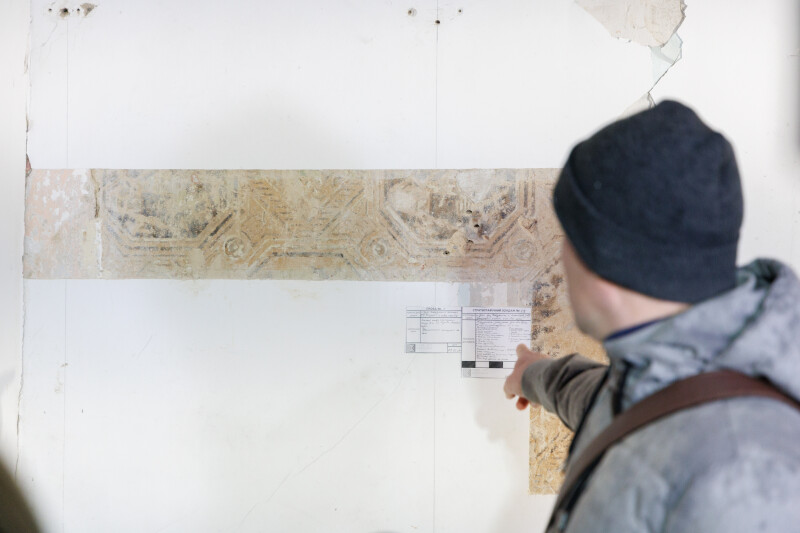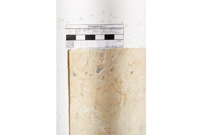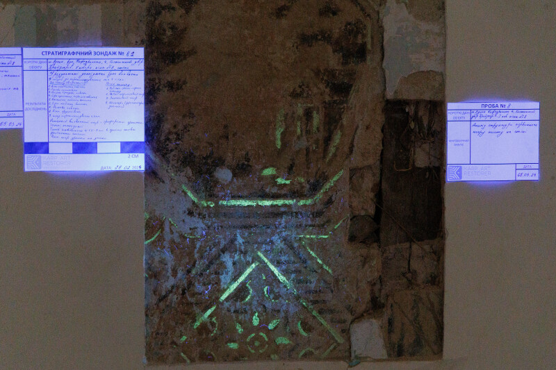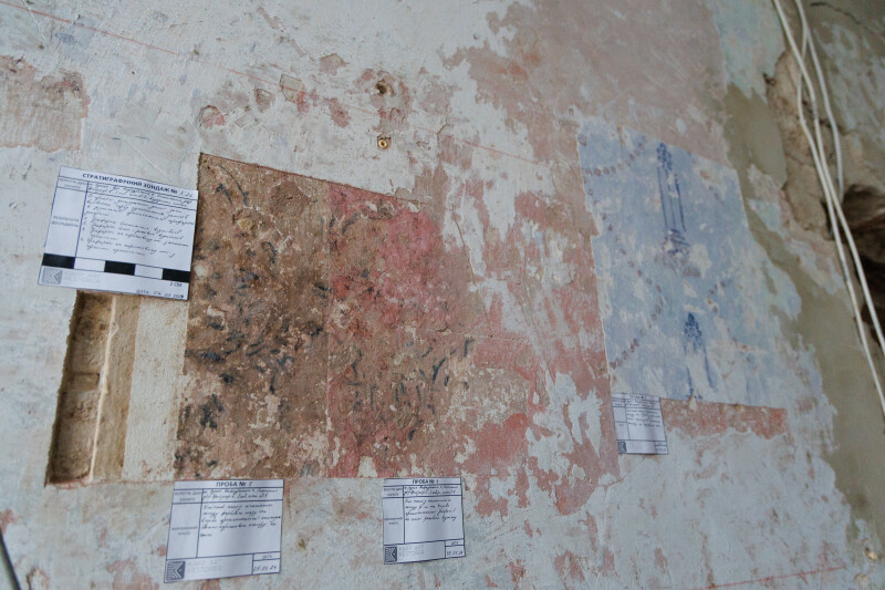 “Це – зондажі. Ми відібрали проби на аналіз хімічної структури тинків та пігментного складу в’язкості фарбового шару, аби максимально зрозуміти, яка техніка використовувалась для виконання усіх розписів. В подальшому це дасть змогу проаналізувати усі можливості та допоможе скласти проєктно-кошторисну документацію задля реставрації цього помешкання”, – сказала Ірина Змієвська.