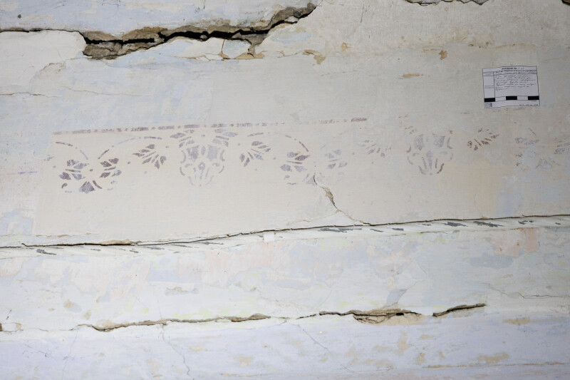 Під час досліджень найстарішої частини першого поверху, реставратори знайшли декоративні оздоблення стін. В основному – це трафаретні декорації. Вони також помітні й в інших кімнатах на першому поверсі. Є декорації, які видимі при денному світлі, а є такі, що просвічуються за допомогою ультрафіолетового спектру променів. На стінах в основному близько дев’яти нашарувань штукатурки різних років. У деяких місцях – до чотирнадцяти.