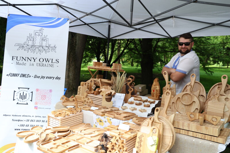 На ярмарку представили унікальні товари, виготовлені ветеранами – цукерки ручної роботи, натуральну пастилу, смажене морозиво, крафтові копченості з сома, українські шопери, картини, годинники та підставки під гаряче з епоксидної смоли, аромасвічки, ікони, прикраси, карнавальні костюми та сувеніри зі стріляних гільз.
