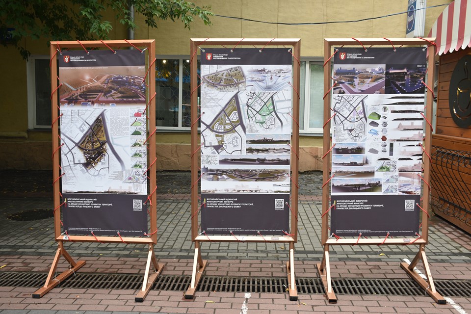 На вулиці Лесі Українки для ознайомлення виставили проекти, що вийшли в другий тур всеукраїнського архітектурного конкурсу на кращу концепцію розвитку території, прилеглої до Луцького замку.