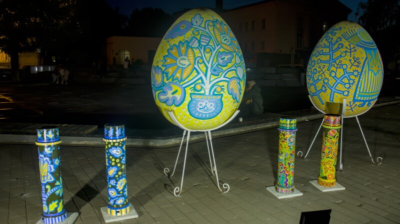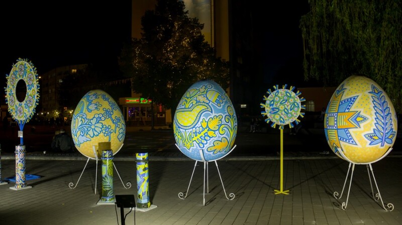 На Театральному майдані встановили арт-інсталяції «Дерево життя», «Воскрес Христос! Воскресне Україна!», «Писанкове диво».
