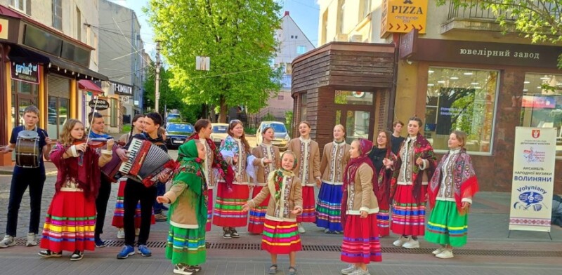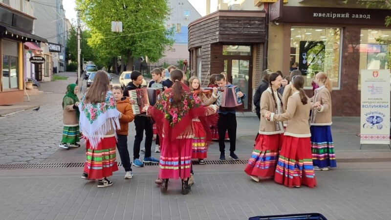 20 квітня перехожих вітали з теплими весняними днями учасники ансамблю народної музики «Волиняни» Луцької музичної школи № 3 (керівники Тетяна Жилюк та Анатолій Марценюк). Юні таланти дарували усім свій спів, музичні виступи і запальні танці.