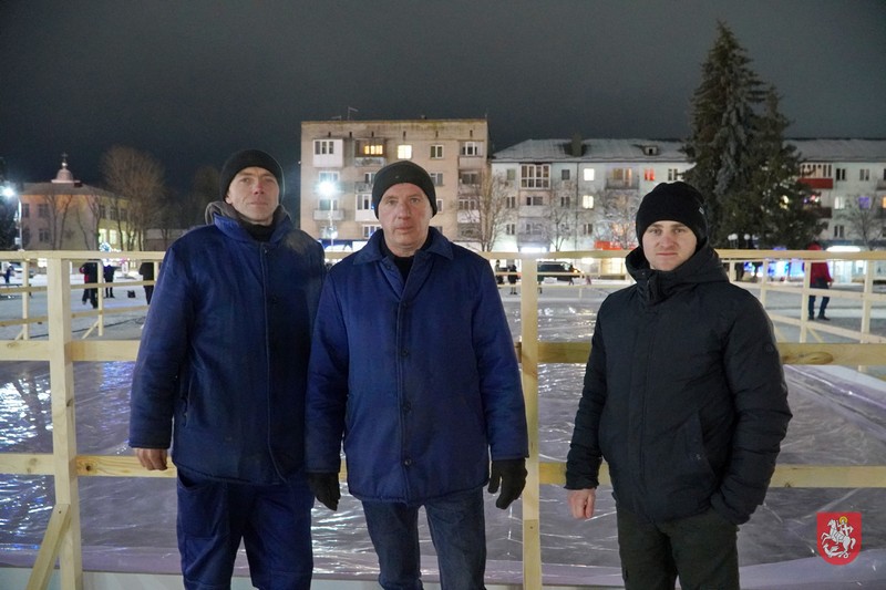 Бригада водозабору у складі слюсарів Віталія Гайдука, Андрія Посельського та Віталія Шемчука на чолі з керівником Миколою Загайчуком залили перший шар ковзанки завтовшки 5 сантиметрів. Якщо за ніч він замерзне, то другий шар заллють уже сьогодні під ранок. Розмір льодяного майданчика – 25х12 м.