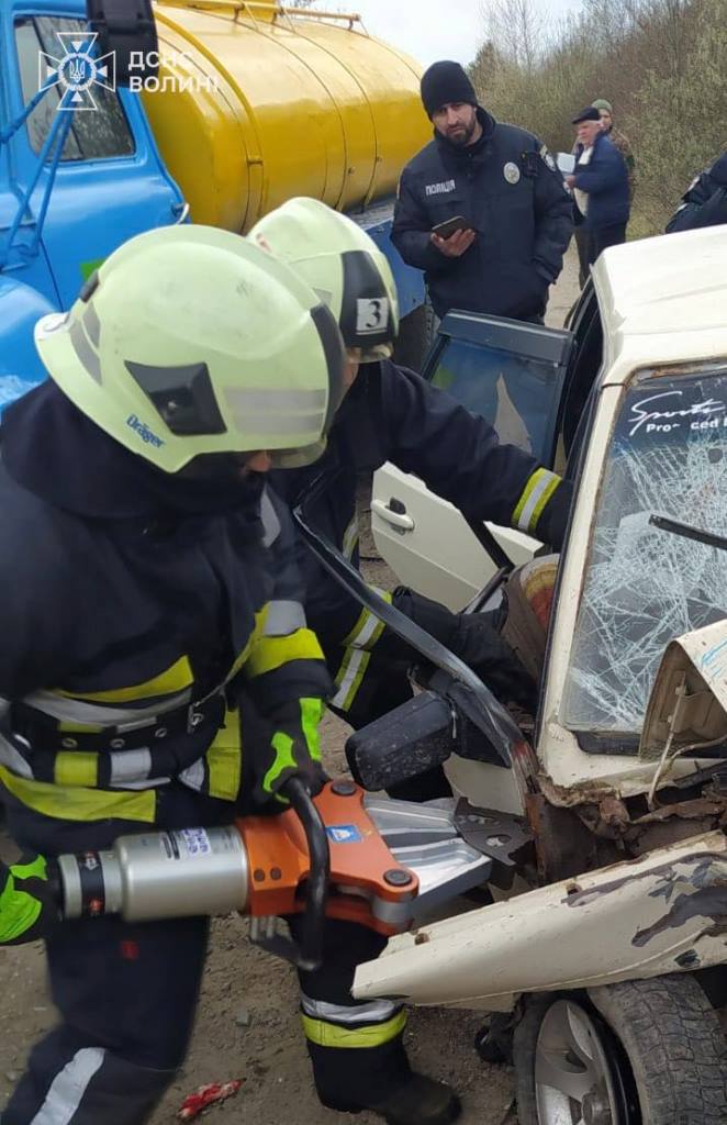 Для ліквідації наслідків до місця події прибули рятувальники частини Аварійно-рятувальний загін спеціального призначення м. Луцьк, за допомогою спеціального обладнання деблокували потерпілого та передали медикам.