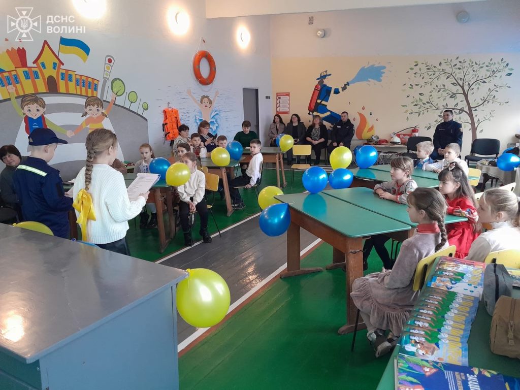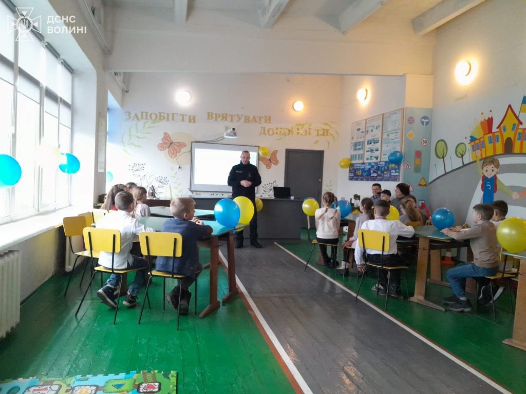 Перший урок для учнів провів офіцер-рятувальник громади. Під час заняття діти дізналися, як правильно користуватися вогнегасником, як діяти у разі виникнення пожежі та що робити при виявленні підозрілих предметів.