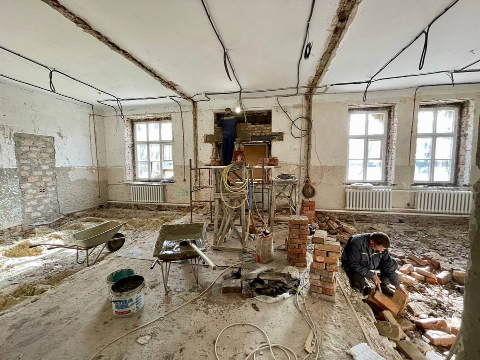 У поліклініці вже зроблено багато основних етапів, але будівельні роботи активно тривають. Тут плануємо розмістити жіночу консультацію. Паралельно працюють і ззовні будівлі. Облаштовують окремий вхід, який буде більш комфортний для пацієнтів і оснащений пандусом.