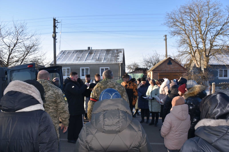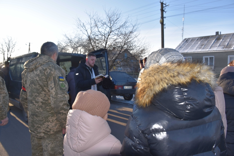 Жителі громади зустрічали Героя на колінах.