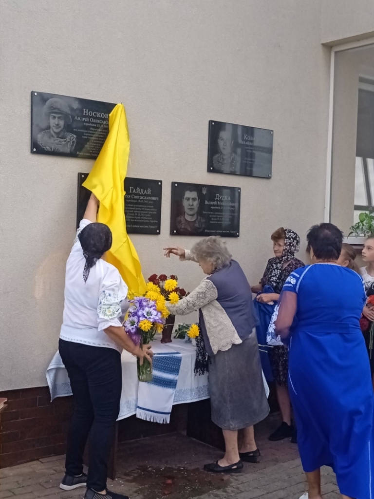 18 серпня у Городищенській громаді відбулася зворушлива, але водночас болюча подія — відкриття меморіальних дощок Героям-землякам, жителям Михлинського старостинського округу: Андрію Носковичу, Михайлу Ковальчуку, Артуру Гайдаю та Валерію Дудці.