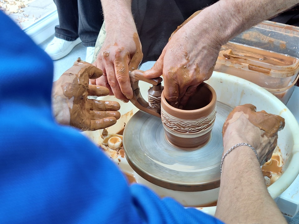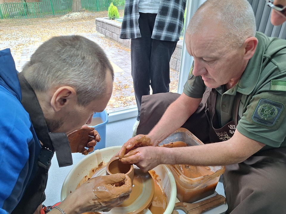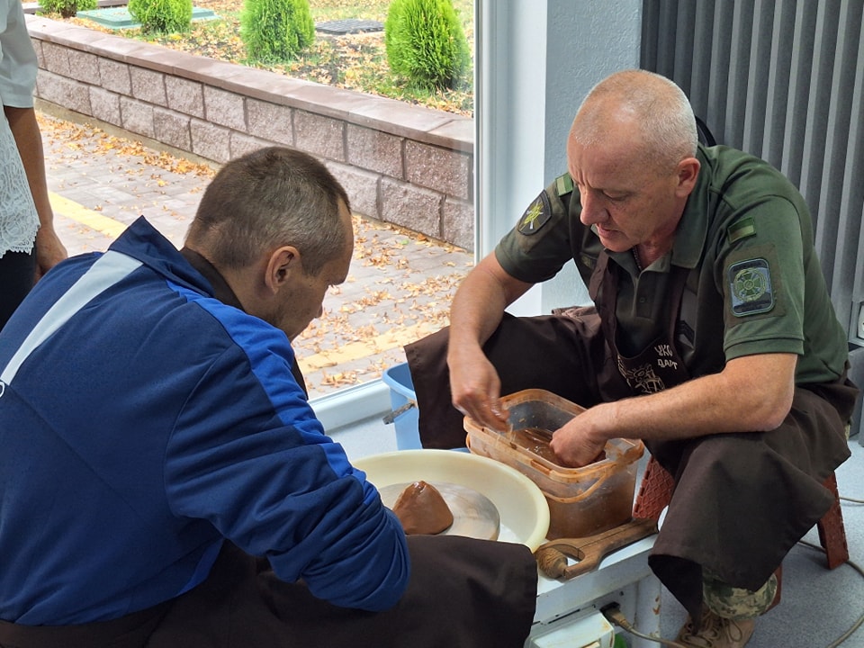 В рамках відкриття студії кераміки мешканці інтернату змогли взяти участь в майстер-класі, який для них провів військовослужбовець 6 прикордонного загону, сержант, гончар Віктор Дудко. Уже під час першого заняття підопічні змогли виготовити горщики та миски, які будуть розмальовувати та обпалювати в муфельній печі.