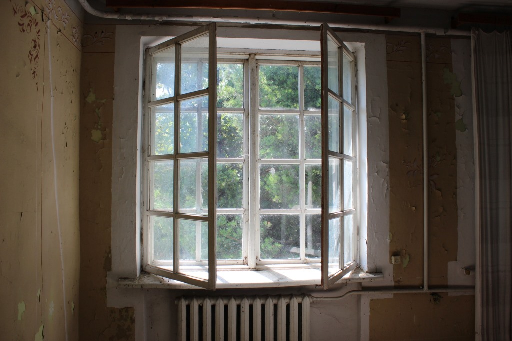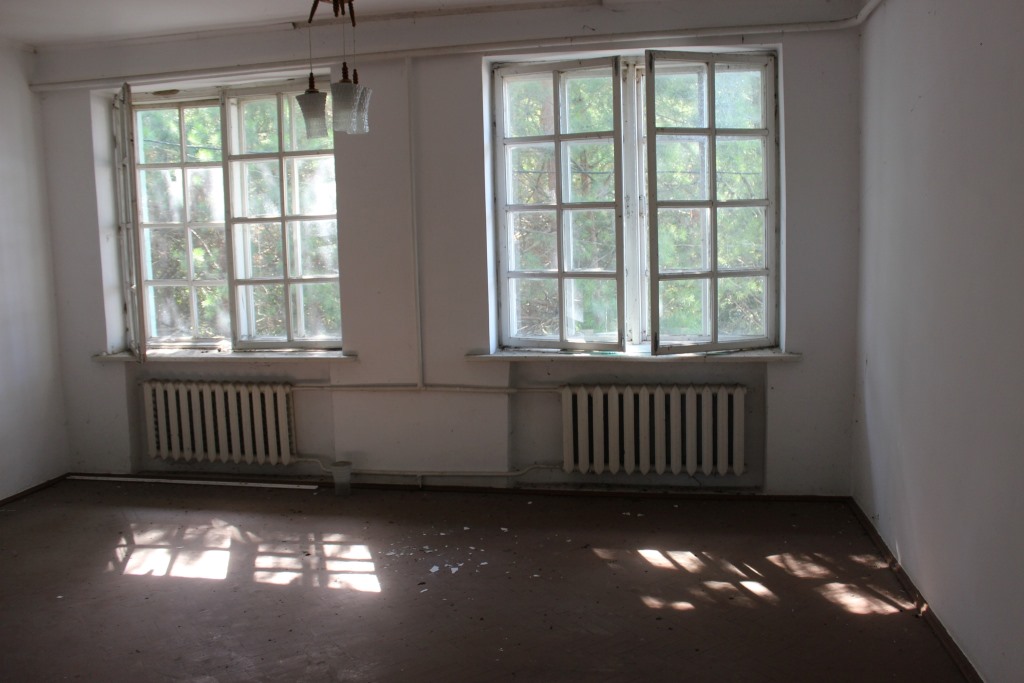 Анатолій Костик та Віктор Годик оглянули великі просторі кімнати з високими стелями та широкими вікнами. Після ремонту тут можна зробити гуртожиток із спільною кухнею на десять кімнат.