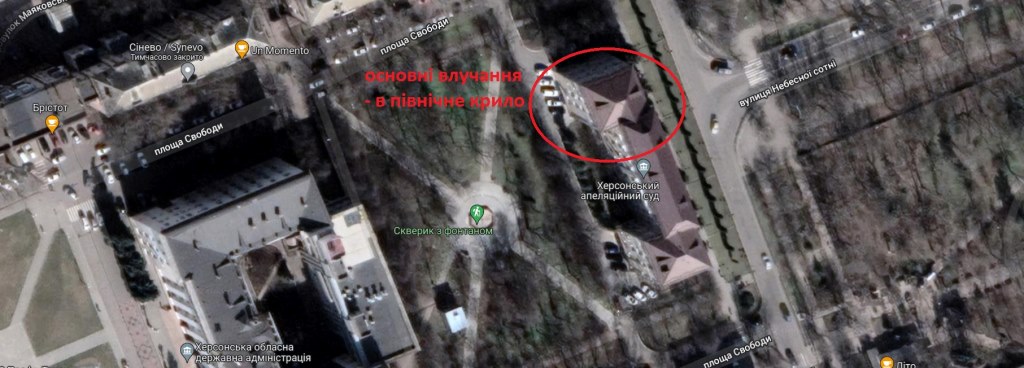 Як повідомив херсонський політолог Володимир Молчанов, йдеться про будівлю, де, до російського загарбання міста, розташовувався апеляційний суд.