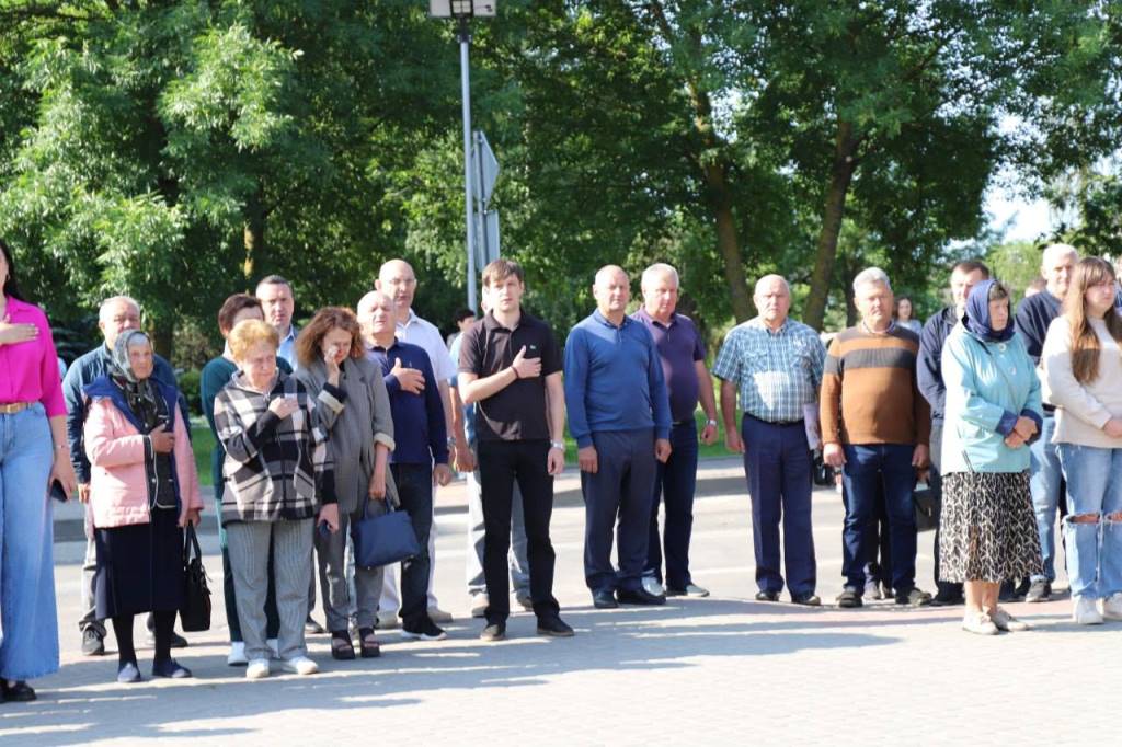 Спочатку присутні схилили голови у загальнонаціональній хвилині мовчання.
