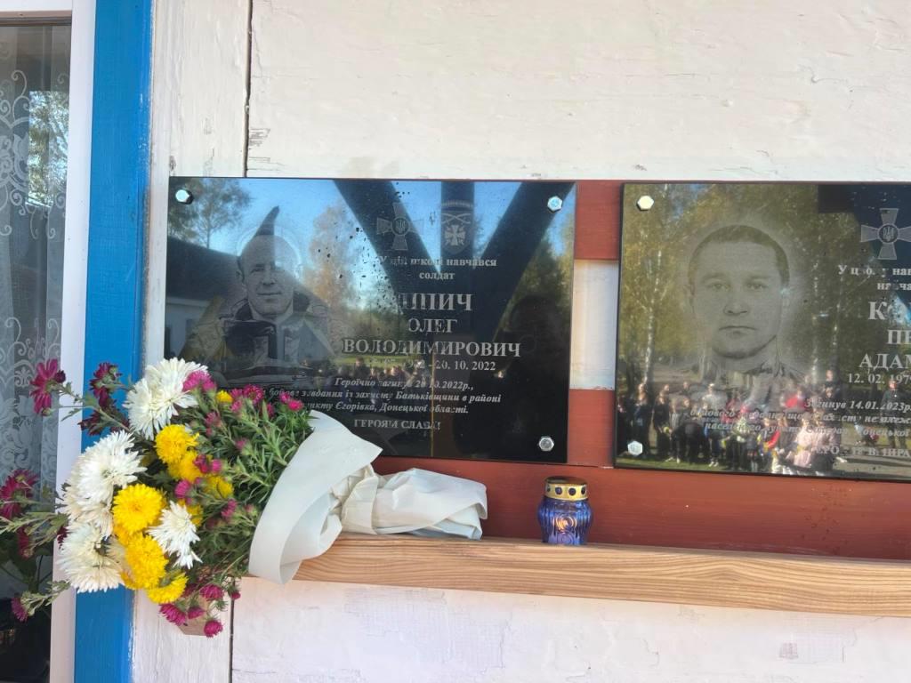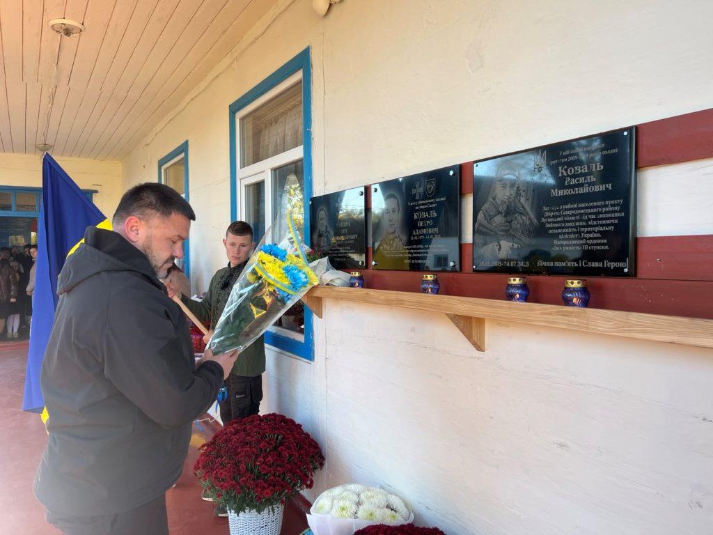 На фасаді Добренського ліцею сьогодні, 20 жовтня, відкрили меморіальні дошки випускникам навчального закладу – Олегу Ліпичу, Петру Ковалю та Василю Ковалю.