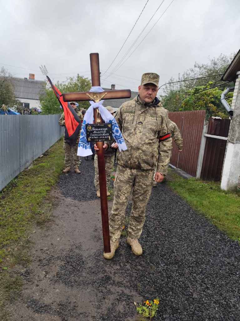 Попрощалися з воїном рідні, друзі, знайомі, побратими. Вшанували пам’ять Героя очільники громади. Вдячні земляки, схиливши у скорботі голови та вклякнувши на колінах, щирою молитвою просили у Всевишнього про спокій душі воїна-захисника, який боровся за волю й незалежність України.