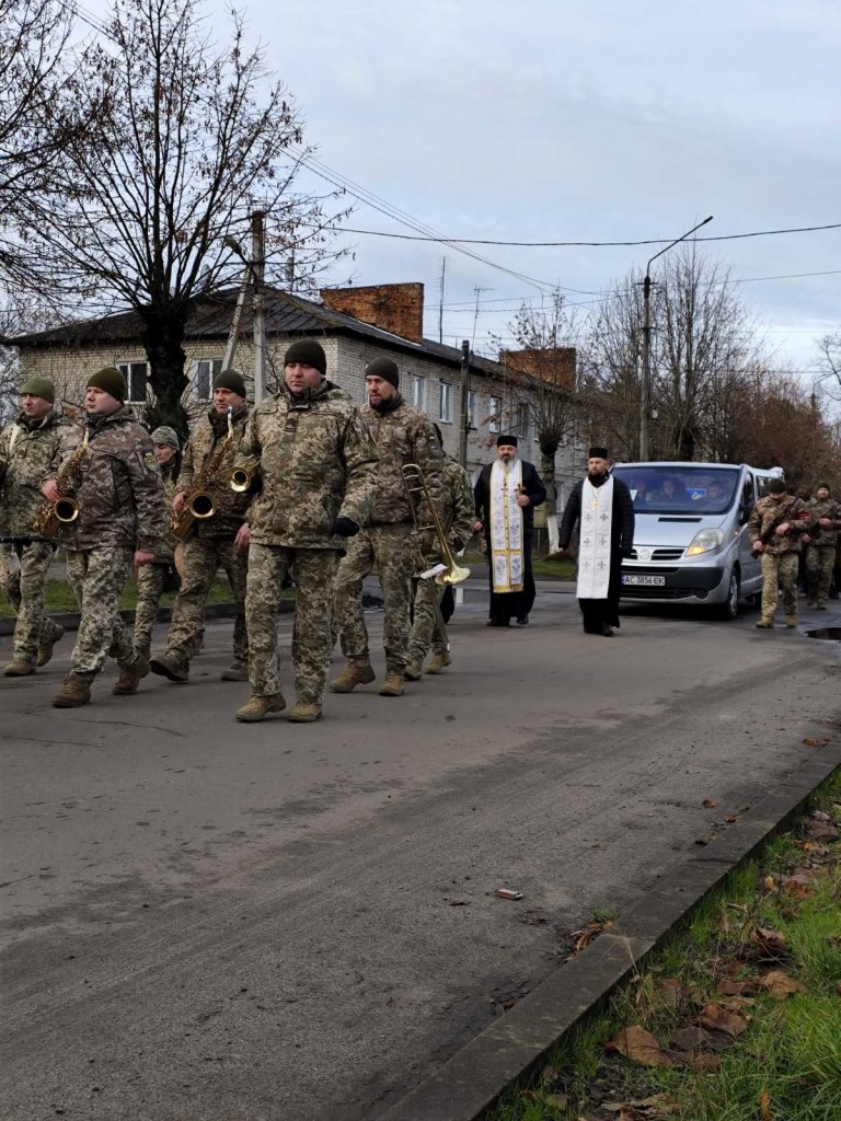 Траурна хода рушила від рідного дому вулицями міста до храму Покрову Пресвятої Богородиці. Чин поховання звершили священники Ківерцівського деканату ПЦУ, очолюваного протоієреєм Іваном Семенюком. Протоієрей Іван Семенюк після заупокійного богослужіння звернувся до рідних Героя зі словами співчуття та розради: