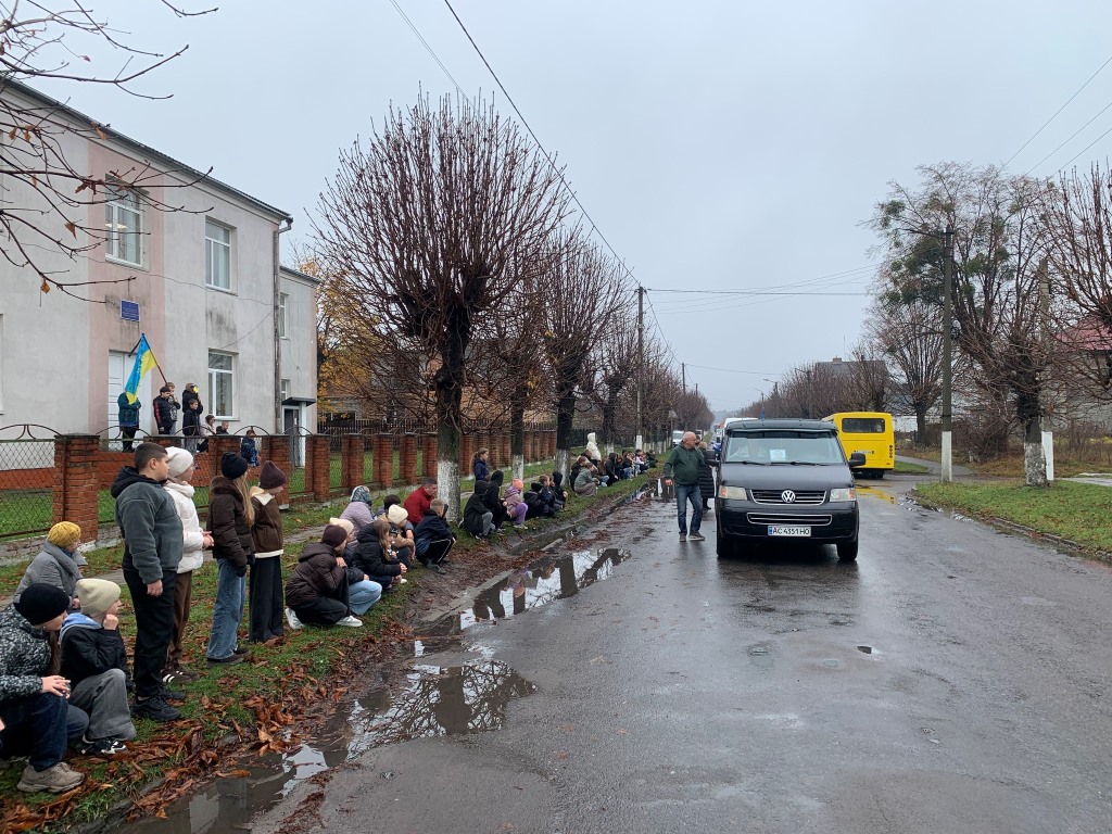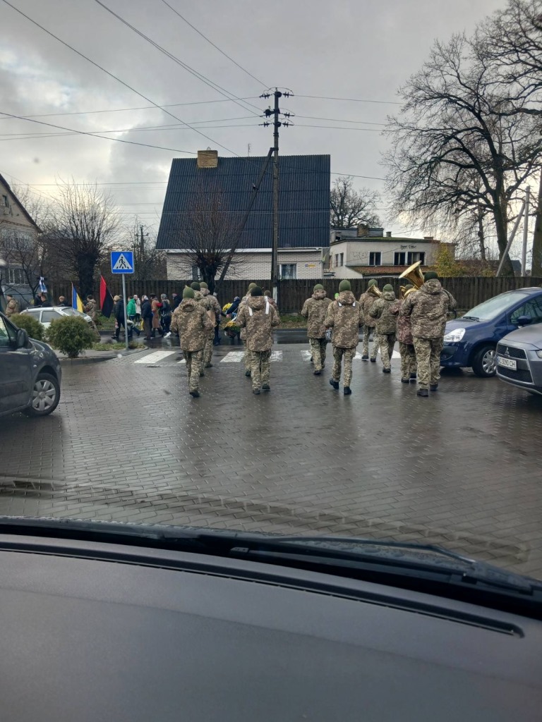 «Назавжди додому повернувся учасник бойових дій – Кравчук Володимир Володимирович – 11 листопада 2025 року. Скорботний кортеж зустріли на перехресті вулиць Луцька та Пилипа Орлика. Далі траурна процесія рушила вулицями міста до рідної домівки.