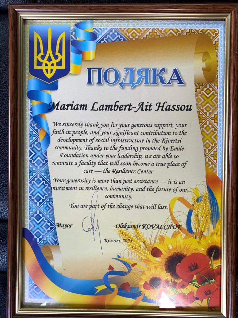 Окрему подяку Олександр Ковальчук висловив Mariam Lambert-Ait Hassou, співзасновниці та CEO Emily Foundation, — за довіру, підтримку і реальний внесок у відкриття Центру.