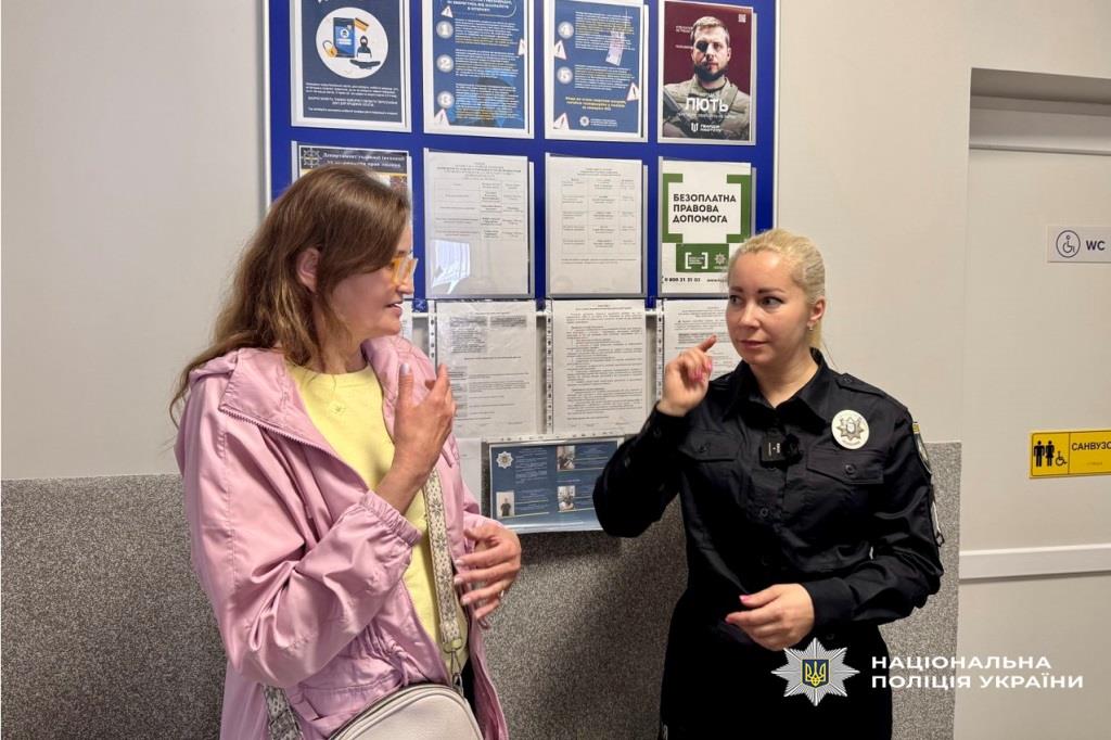 Цього дня відвідала підрозділ і пані Ольга, яка не чує з дитинства. Раніше, говорить жінка, вона писала все на листочку або ж просила сусідів, аби викликати поліцію. Нині вона завітала в поліцію, де з нею спілкувалась мовою жестів поліцейська Світлана. Наразі вона єдина з цього відділення закінчила курси жестової мови і радіє, що може надавати повноцінно весь спектр поліцейських послуг усім, хто цього потребує.