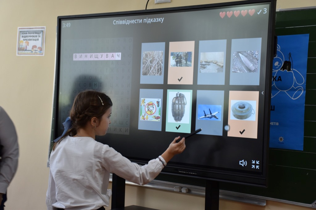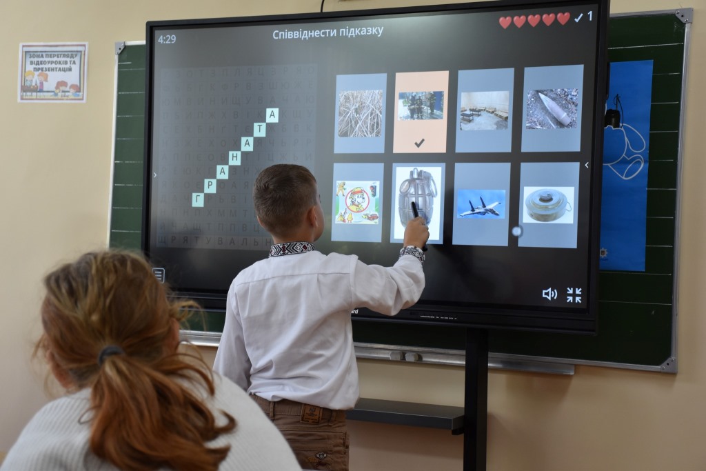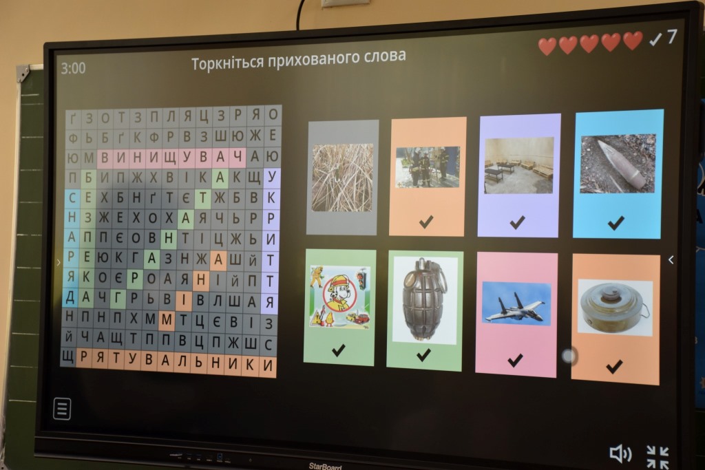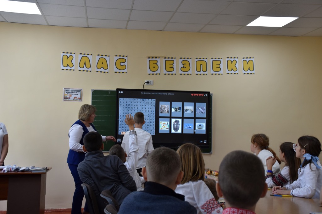 Щоб не витрачати ні хвилини, цього ж дня з учнями 4-го класу провели перше заняття, на якому діти ознайомилися з наповненням класу, переглядали мультфільми з правилами безпеки життєдіяльності, а на завершення, щоб закріпити здобуті знання, на уроці розгадували ребуси з безпекової тематики. Дітям було дуже цікаво, кожен хотів поділитися своїми знаннями в тій чи іншій сфері безпекового середовища.