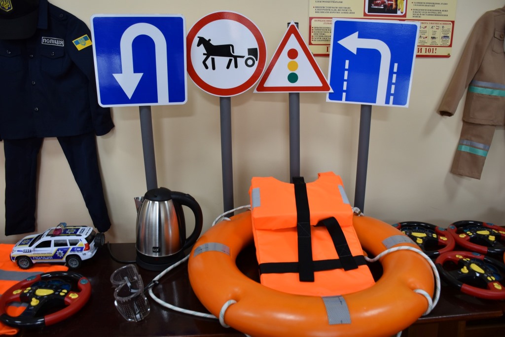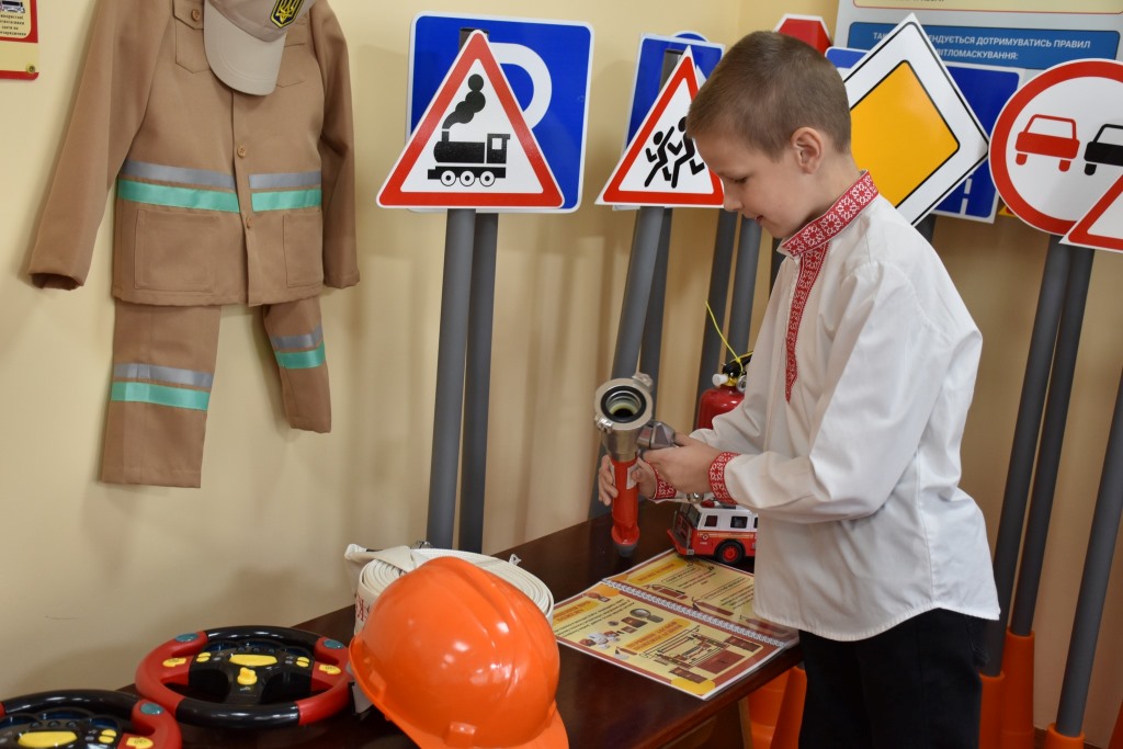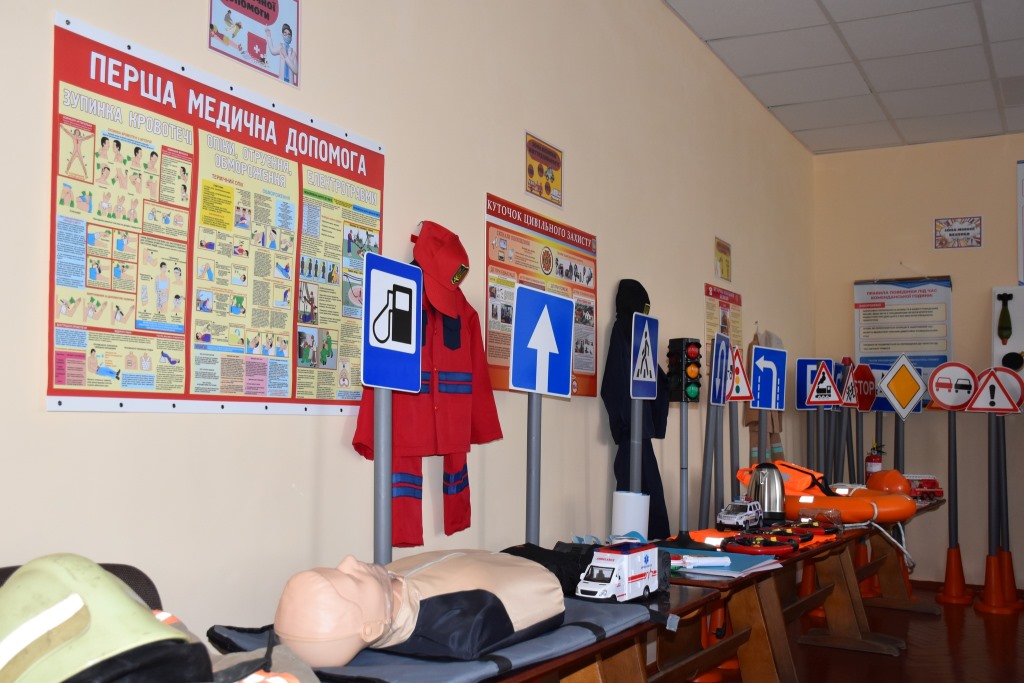 Клас обладнаний мультимедійним обладнанням, навчальними макетами та спеціальною літературою, що допоможе дітям краще вивчати правила пожежної та мінної безпеки, принципи безпечного відпочинку на воді, послідовність дій під час надання домедичної допомоги потерпілому, як безпечно рухатися по дорозі та інші правила безпеки, яких необхідно дотримуватися, аби не сталося біди.
