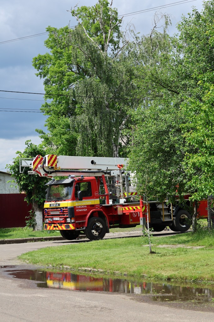 Добровольці з села Озеро були готові надати автодрабину, але засилля дротів, ліній електропередач і щільна забудова — додаткові ризики, які в цій ситуації були необґрунтовані.