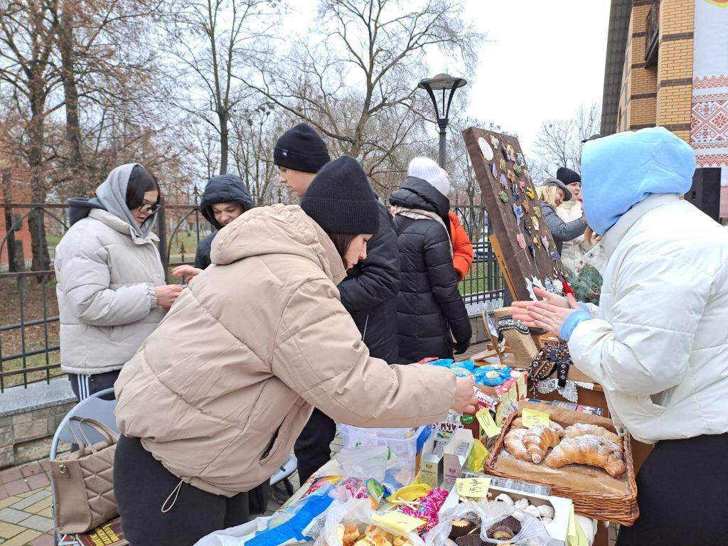 На благодійному ярмарку, який організували на території паркової сцени, можна було придбати солодощі та цікаві декорації до новорічних свят, сувеніри, вироби, виготовлені власними руками. Зібрані кошти організатори передадуть нашим воїнам.