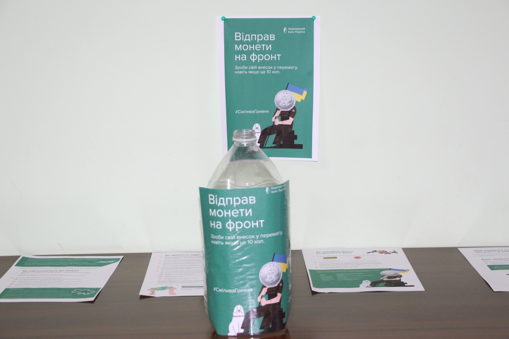 Національний банк України ініціював проведення благодійної акції “Смілива гривня”. З 1 серпня по 31 жовтня по всій Україні триватиме збір монет номіналами 10, 50 копійок та 1, 2, 5 і 10 гривень. Суму зібраних коштів пере на потреби Збройних Сил України.