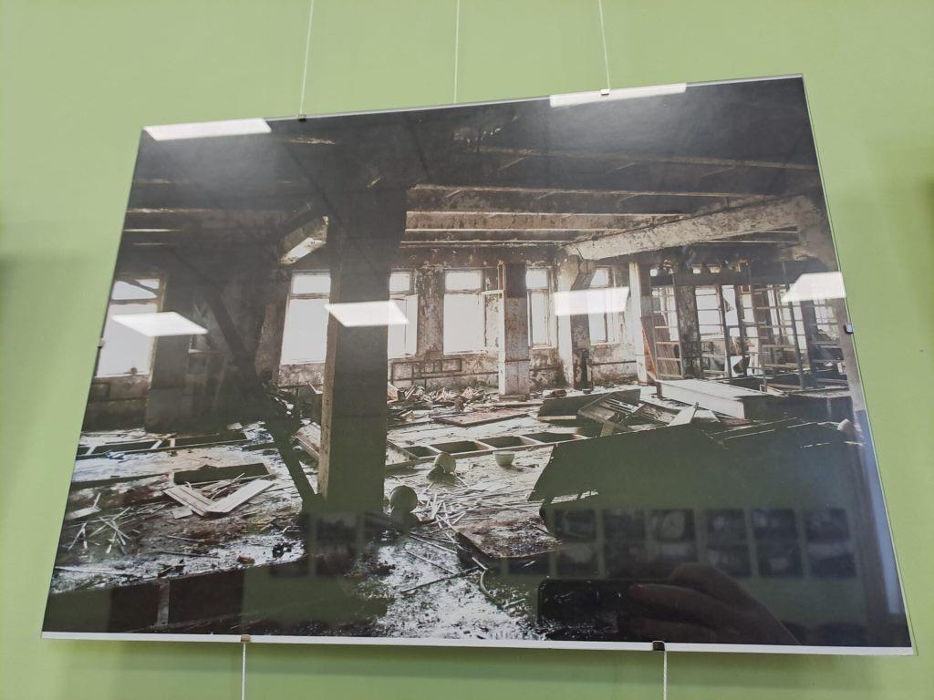 До експозиції увійшло дев’яносто світлин. Зайшовши у зал, відвідувачі побачать силует мертвого міста Прип’ять, над яким височіє колесо огляду. Тут є фото закинутого причалу, школи, кінотеатру. Місто будувалось для життя багатьох молодих сімей, працівників ЧАЕС, а стало привидом. Вражають світлини радіолокаційної станції «Дуга». Фото замірів дозиметра дає уявлення про наявність радіаційного забруднення, яке особливо високе біля рукавиці пожежника, що ліквідовував займання на станції. Здалеку видніється на світлинах ізоляційна споруда над четвертим енергоблоком ЧАЕС, більш відома як саркофаг.