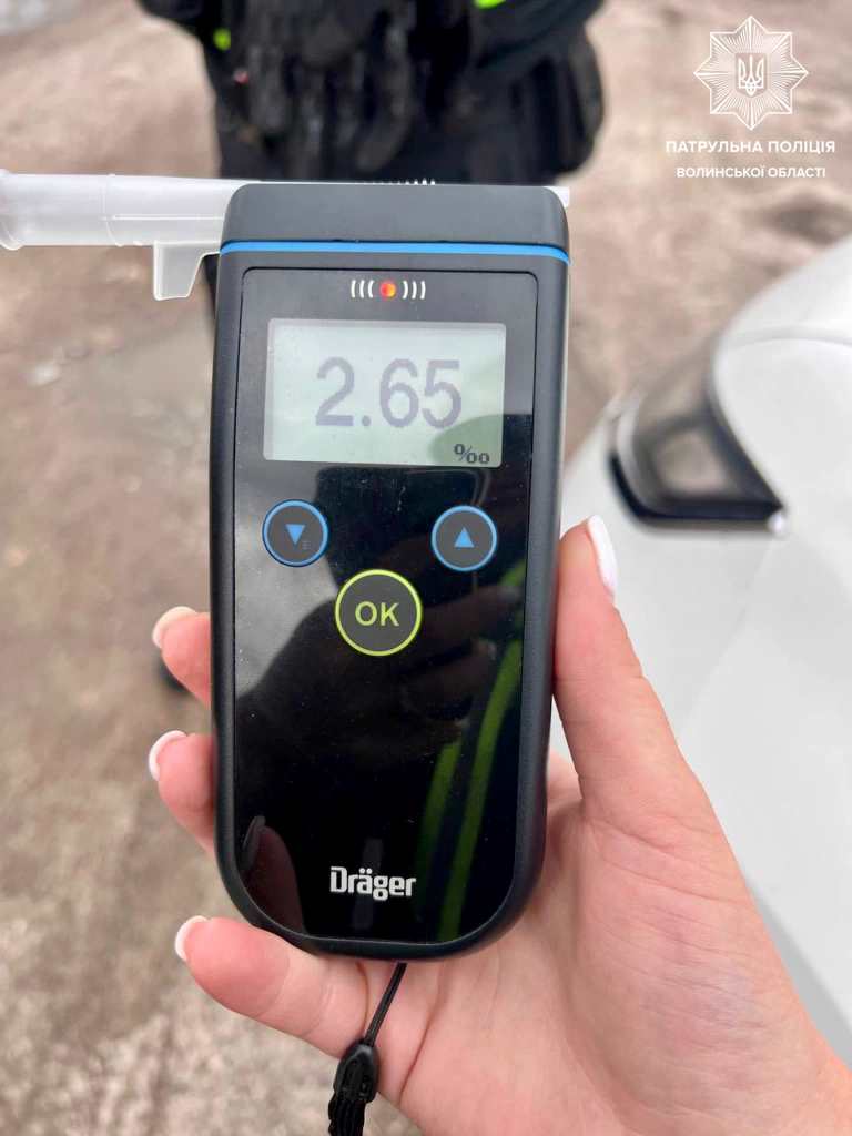 Коли ж патрульні сказали чоловіку показати для перевірки посвідчення водія та свідоцтво про реєстрацію транспортного засобу, то виявилося, що він таких документів не має. Також у керманича охоронці порядку виявили ознаки алкогольного сп’яніння та запропонували пройти огляд на місці. Прилад Drager показав результат 2,65 проміле, що перевищує допустиму норму у 13 разів.