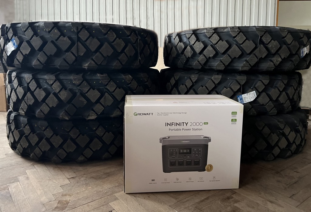 – в/ч А4308 — шість автомобільних шин до ЗІЛ-131 та портативну зарядну станцію Growatt Infinity;