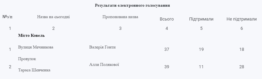 У Ковелі підбили підсумки громадського обговорення щодо перейменування вулиці та провулка