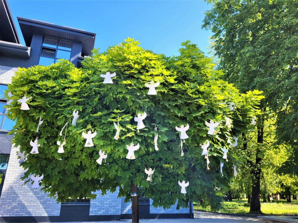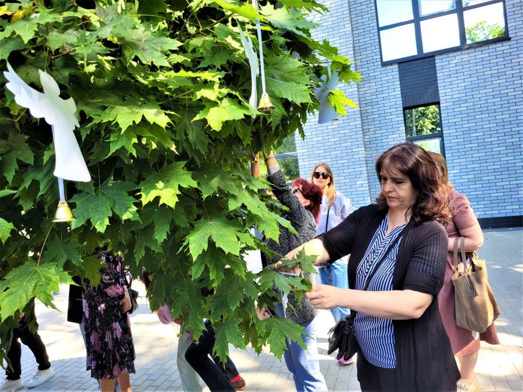 На одному з дерев біля пам’ятника «Борцям за волю України» ковельчани почепили символічні дзвіночки з білими стрічками, як символ дитячих голосів, які будуть вічно звучати в серцях українців.