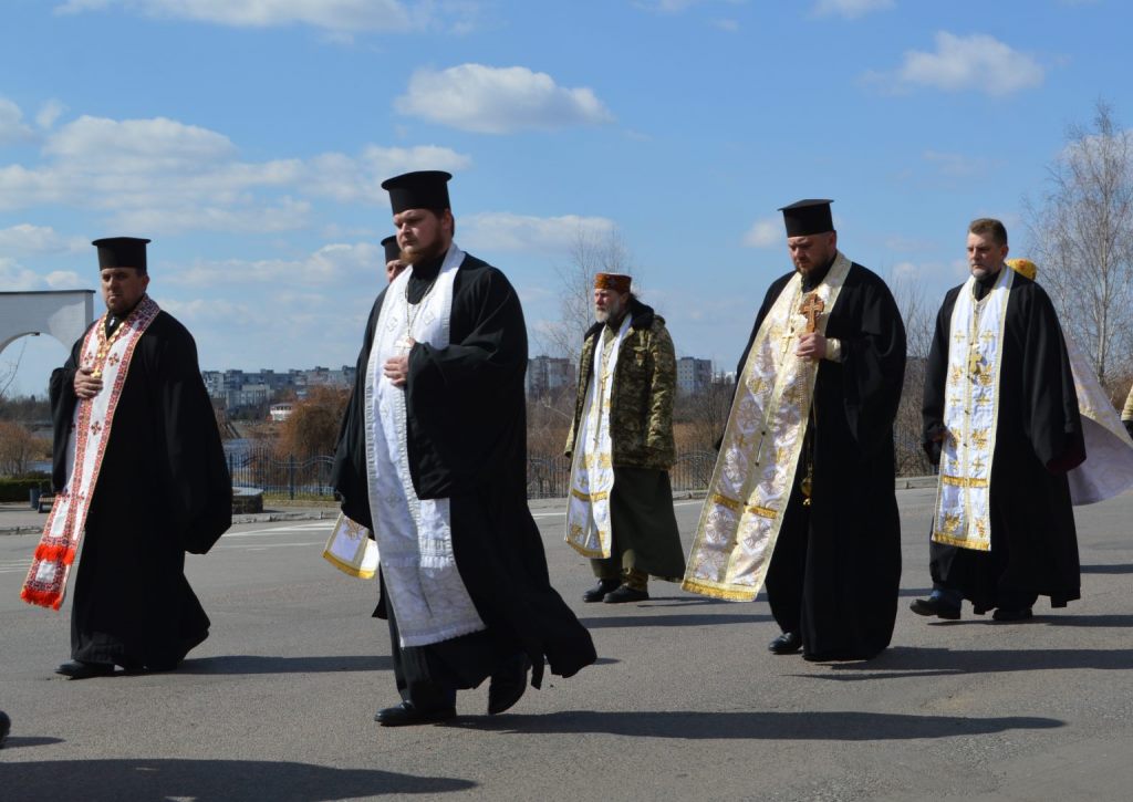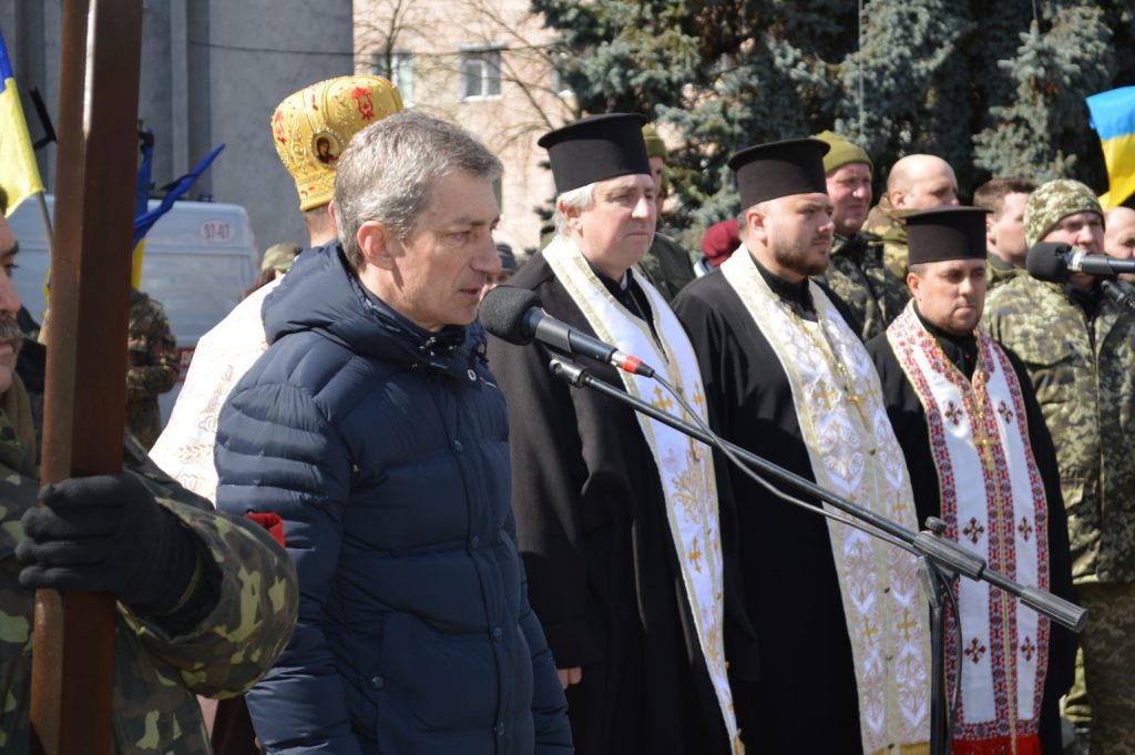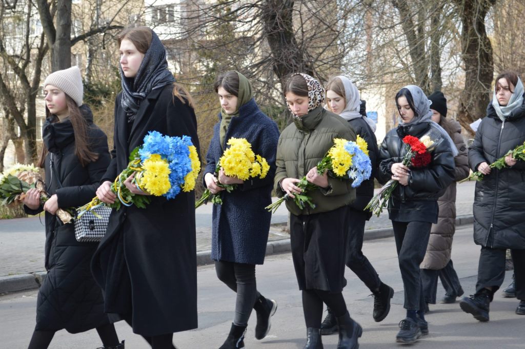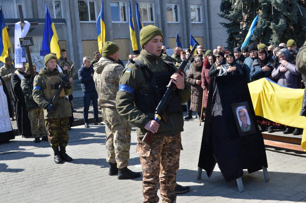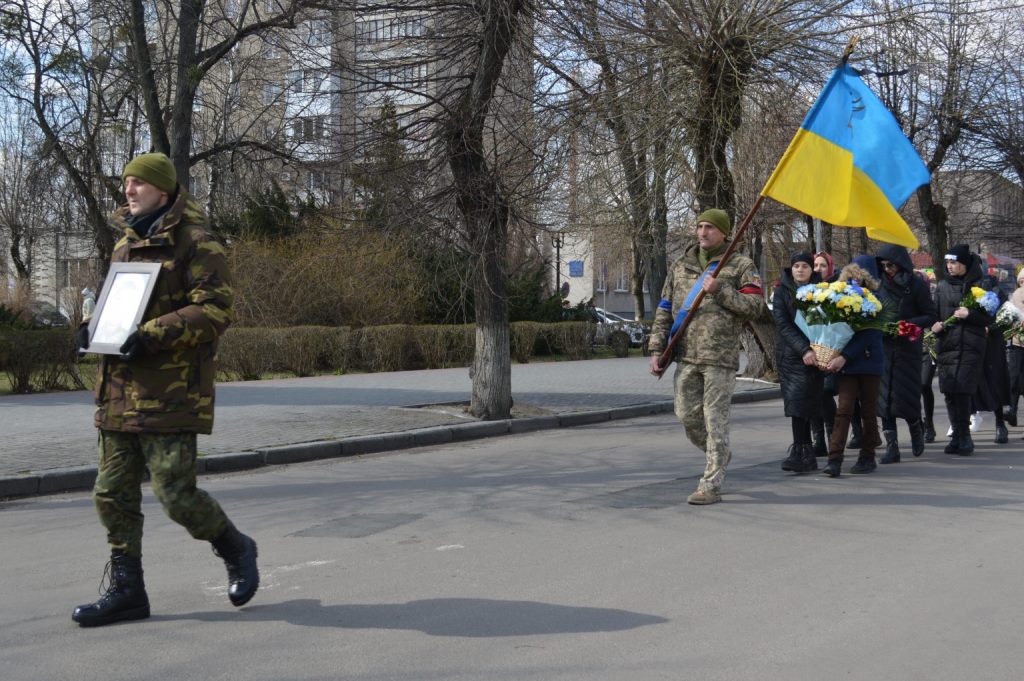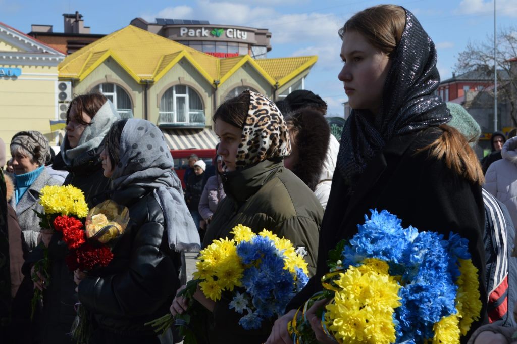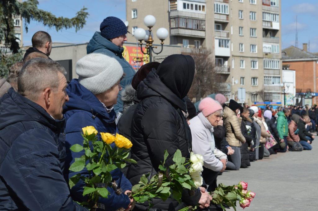 Жалобна процесія після панахиди у Свято-Благовіщенському соборі пройшла центральною вулицею міста. Люди навколішках зустріли мужнього воїна на площі Героїв Майдану.