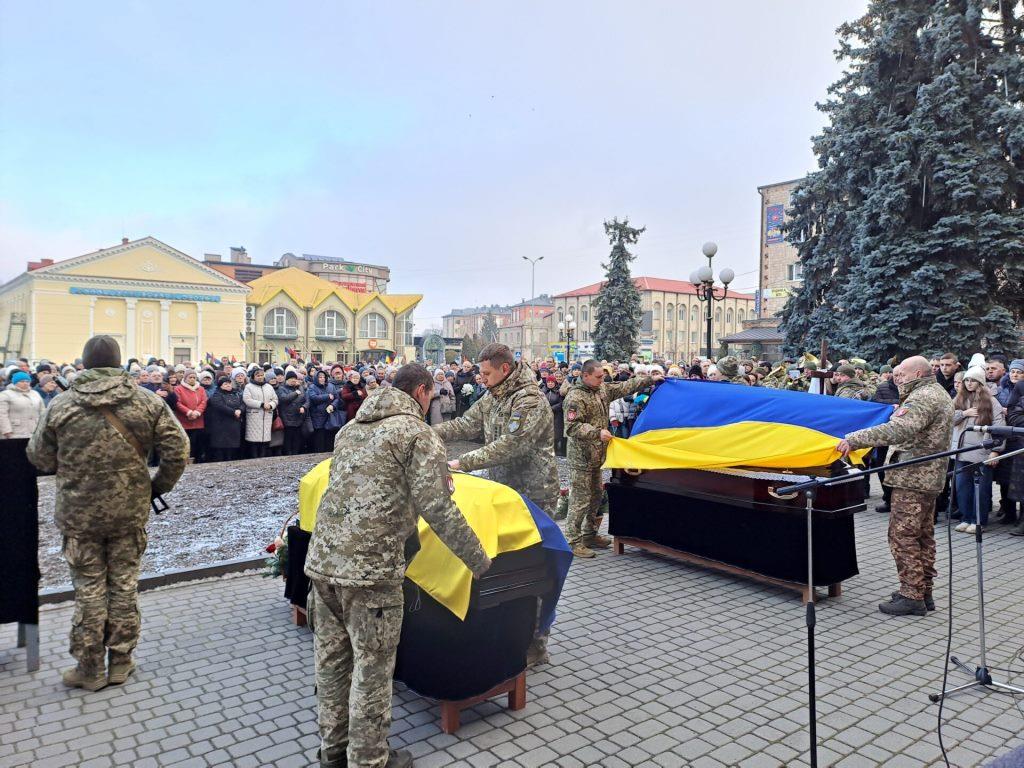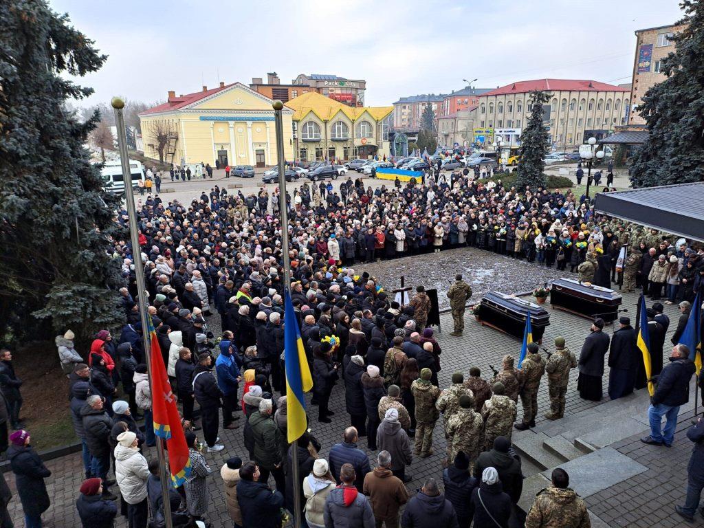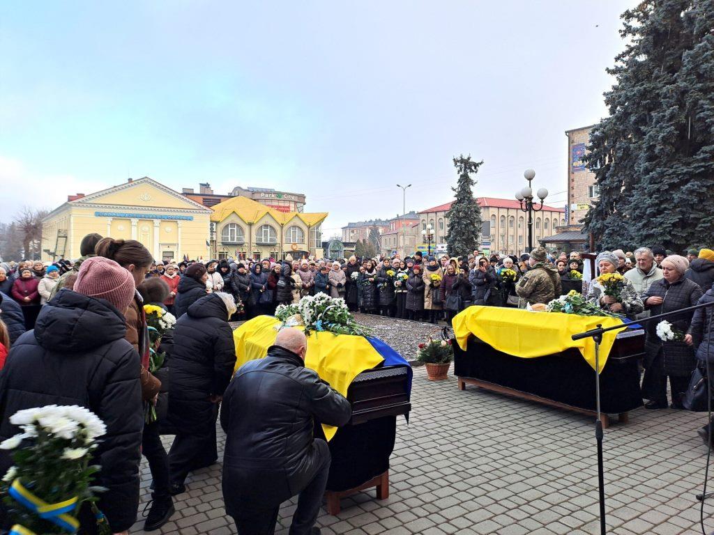 Кожна втрата – це великий біль, який не передати словами та не виплакати слізьми. Дві домовини, вкриті синьо-жовтими прапорами. Люди підходять, стають на коліна, схиляють голови та мовчки прощаються з Героями.