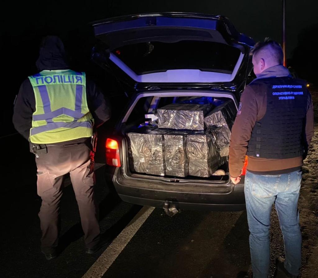 Транспортний засіб та ящики з 8,5 тис. пачок цигарок без марок акцизного збору вилучили співробітники Нацполіції.