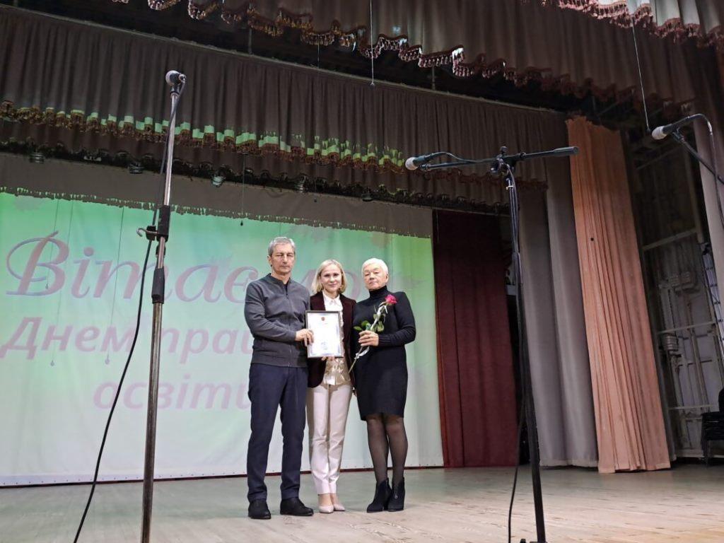 Начальник управління освіти Віктор Бичковський та голова профспілки працівників освіти Ігор Сезьомін також привітали колег, подякували за сумлінну працю та вручили відзнаки.