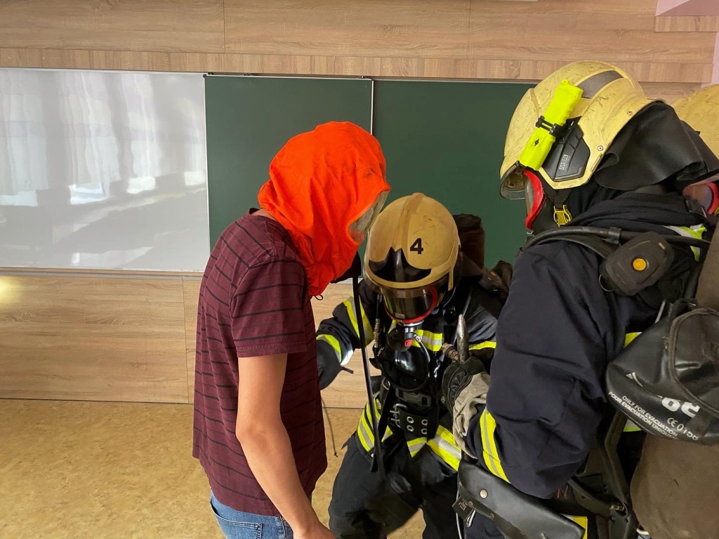 Після відпрацювання співробітники Служби порятунку ознайомили ліцеїстів із професією вогнеборця, продемонстрували пожежний автомобіль та пожежне оснащення.
