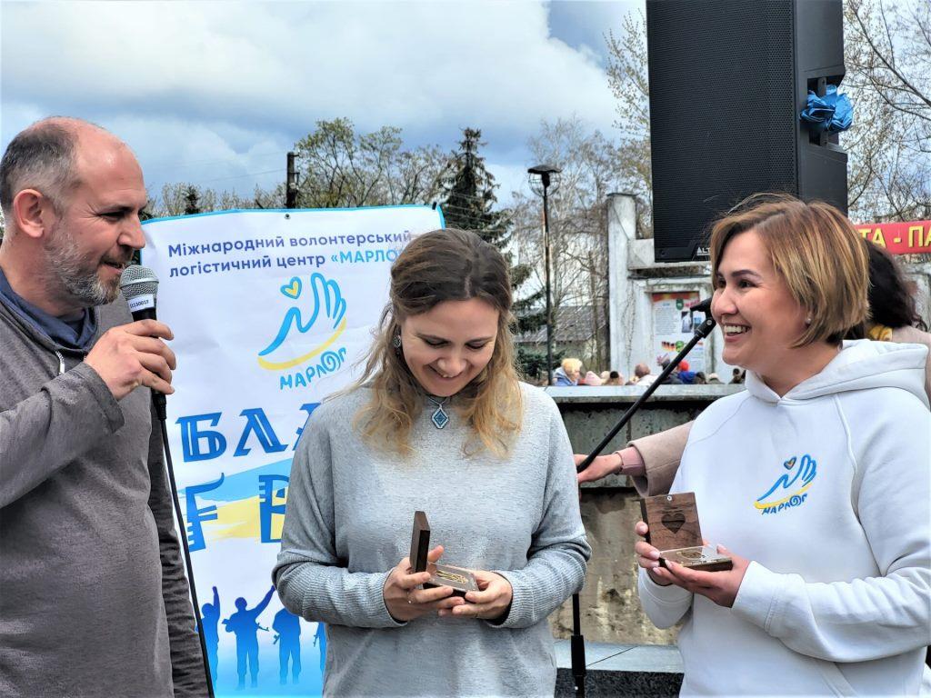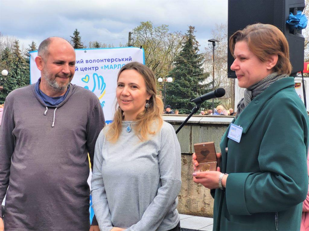 Гості відзначили ковельських волонтерів нагородою своєї організації «Золоте серце». Їх отримали – Наталія Попова, Ольга Дзямко, голова ГО «Велика ідея» Людмила Зубарєва, керівник англійської школи «Єврофюче» Інна Поліщук, керівники центру патріотичного виховання «Волинська СІЧ» Сергій та Тетяна Дружиновичі, керівник ГО «Українська Асоціація Захисту здоров’я Марлог-Кадуцей» Оксана Артемук, представник ГО «Зігрій душу» Анна Півень.