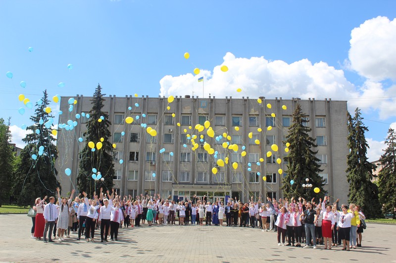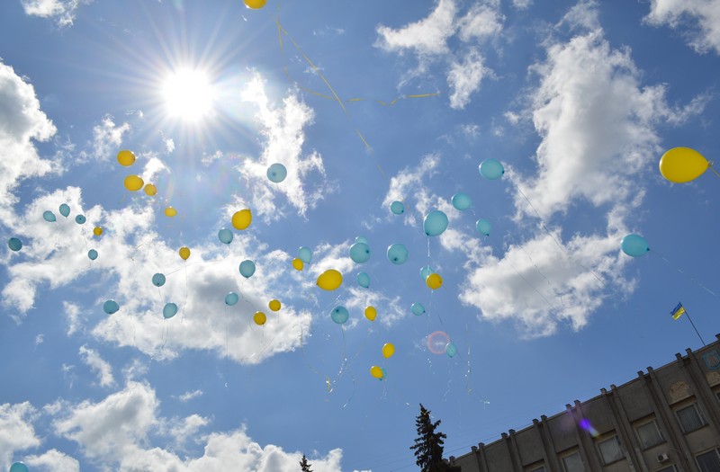 У піднесеному настрої, вітаючи один одного зі святом, всі дружно випустили у небо сині і жовті кульки. Скандуючи «Слава Україні!», «Героям Слава!», «Слава нації!», «Смерть ворогам!», «Україна понад усе!» засвідчили патріотизм, національну єдність й особливість сьогоднішнього дня.