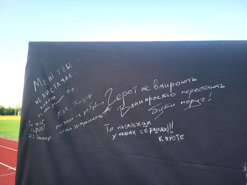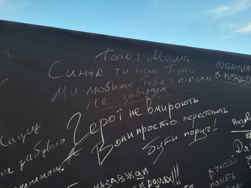 «Дякую за наших двох донечок, які нагадують тебе. Ти був особливим, бо твій погляд на все часто вибивав мене з-під ніг. У цьому був весь ти. Твої жарти завжди піднімали настрій, а твої обійми були найзатишнішим місцем у світі. Пишаюся тобою. Хочу, щоб там, на небі, жилося тобі добре, тому тут, на Землі, я буду старатися виховувати наших донечок гідними людьми. Колись, якщо я стану письменницею, то першу книгу напишу про тебе — про мужнього, відданого чоловіка, що став на захист не лише своєї сім’ї, а й своєї держави. Ти — приклад справжнього чоловіка і бойового медика», — сказала Анастасія.