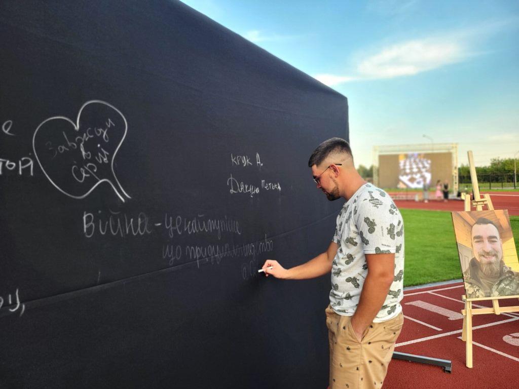 Яким Петро був чоловіком, татом, людиною — про це говорила його дружина Анастасія, яка вела цей вечір і знає про нього найбільше. Вони прожили 10 щасливих років. Тепер вони — у теплих спогадах, фотографіях, нотатках. Анастасія хоче, щоб пам’ять про чоловіка жила не лише в родині, бо він вартий того, щоб про нього знали, ним пишалися, з нього брали приклад.