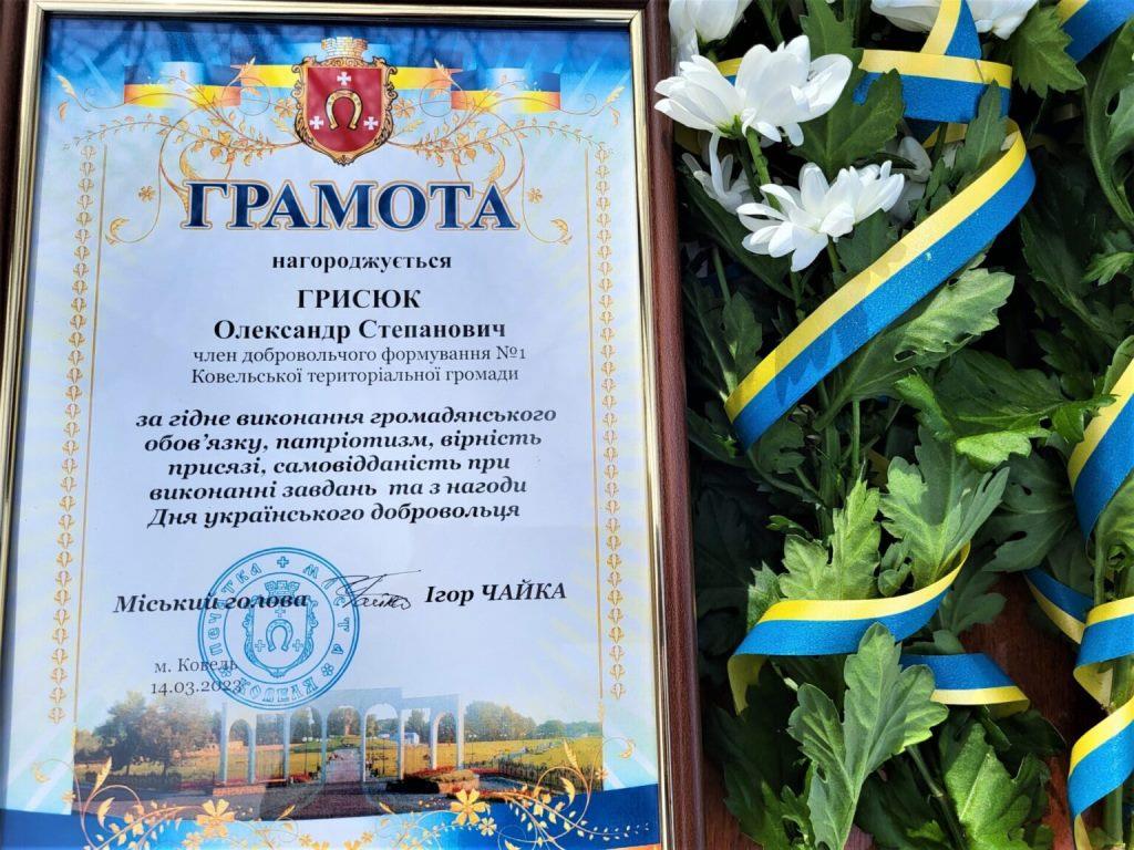 Мер разом із заступником центру об’єднаного міського територіального центру комплектування та соціальної підтримки Валентином Прищенком вручили медаль “За військову службу Україні” сестрі Дмитра Ягоди. Цієї нагороди ковельчанина — захисника України удостоїли посмертно.