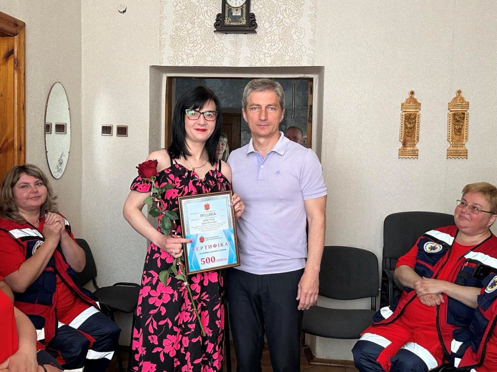 За високий професіоналізм, сумлінну працю, мужність і милосердя та з нагоди Всесвітнього дня екстреної медичної допомоги Подяками міського голови відзначили Марценюка Олега – лікаря з медицини невідкладних станів та Приступу Ірину – старшу фельдшерку з медицини невідкладних станів.
